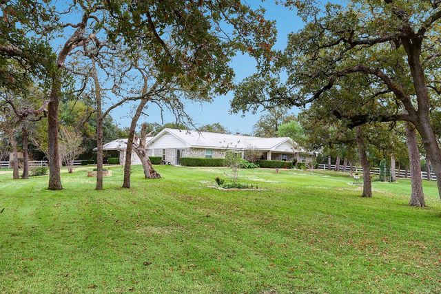 A dream country location only a 5 minute drive to downtown Round Top! This very well maintained home sits on 12.4 rolling acres of land with oak trees adorning the property from front to back.