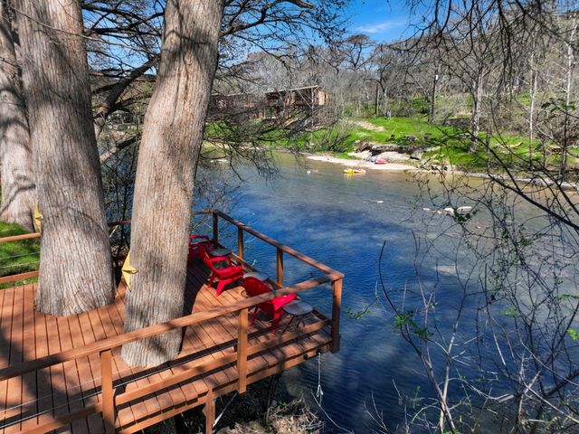 Step into your exclusive riverside sanctuary on the Guadalupe River! Meander down the pathway to the water's edge, where you can wade in or cast your line from the fishing dock. Boasting ample storage...