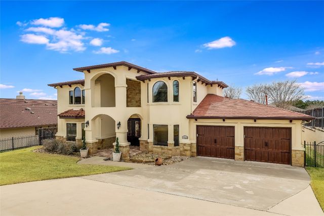 This luxurious Mediterranean-style home boasts of views of Lake Travis! The picturesque backyard oasis offers year round relaxation and entertainment, featuring a custom pool and spa, cascading waterf...