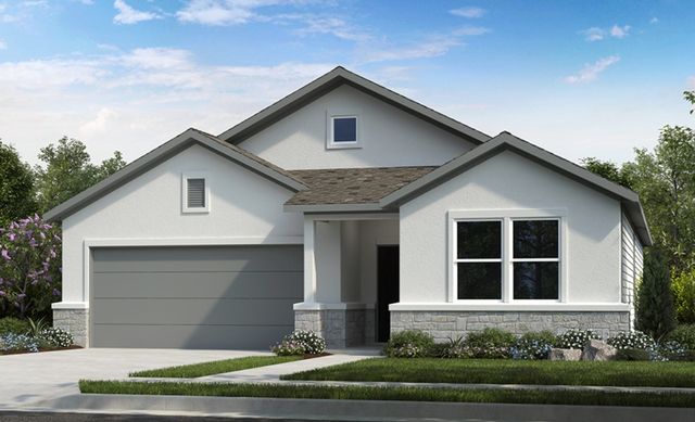 The ranch-style Agate floor plan is designed for your comfort and convenience. This inviting home revolves around an airy open layout showcasing a great room, a kitchen with a center island and a dini...
