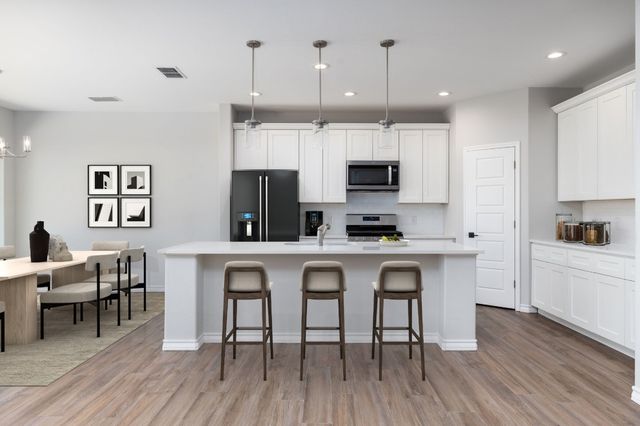 MOVE-IN READY! Home office with French doors frame the entry. Extended entry flows into the family room, kitchen and dining area.