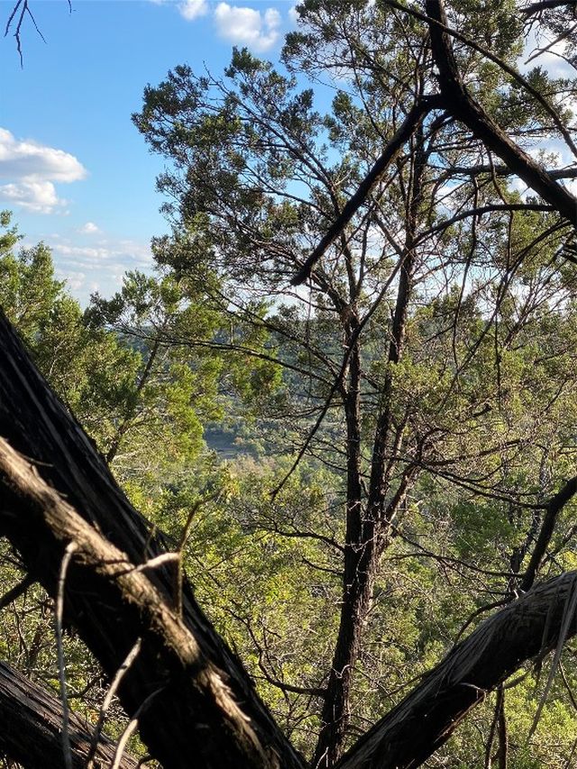 This lot has panoramic, hill country views beyond the tree lines. The lot is terraced and has a few bluffs looking out to the tranquil views.
