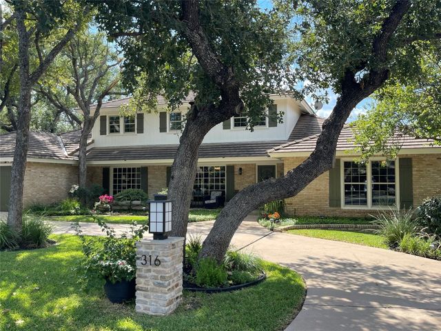 NEW PRICE! Centered on a tree-filled 96-foot lot, this 3800+ two-story home located in Horseshoe Bay North is a “Classic”. Each generous sized room flows into the next with elegance and grace.