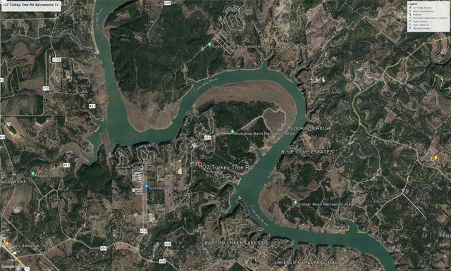10 Gorgeous acres inside the gated Turkey Tree Community in Spicewood, Tx. There is a 352 sf cabin occupied by the sellers and a 1500 sf commercial metal shop ( 30x50) with a 200 amp service.