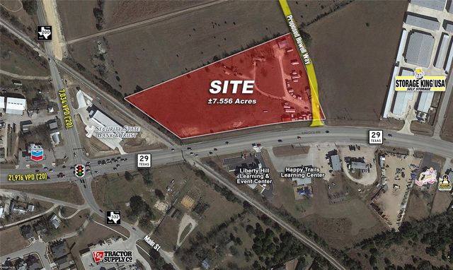 Prime Investment opportunity in Liberty Hill with both Commercial and residential potential. Property with approx 1112 ft frontage on Highway 29 and 678 feet on County Road 266, with approx 17.