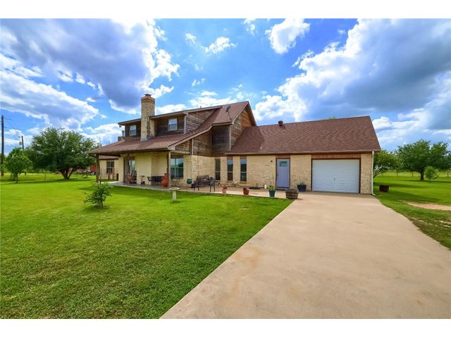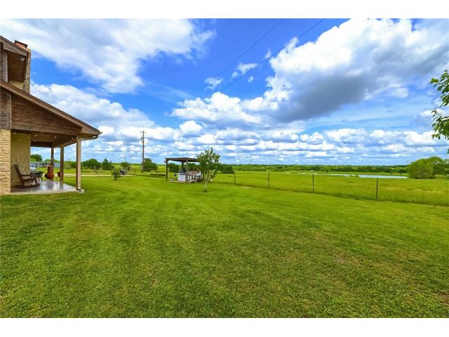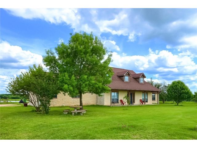 This lovely custom ranch home features three bedrooms and two and half baths with many upgrades. Features include main grand entry, lots of storage, oversized walk-in gun vault/safe room, two fireplaces, one in the main living and master bedroom, walk in closets, huge gourmet kitchen with an island, two large upstairs bedrooms with jack and jill bathroom. There is also an additional septic, water meter and electric hook up on the property. The lush beautiful pasture features improved and native grasses and a huge stock tank for fishing. Great location close to Austin, Tesla and the future Samsung! The two manufactured homes do not convey.