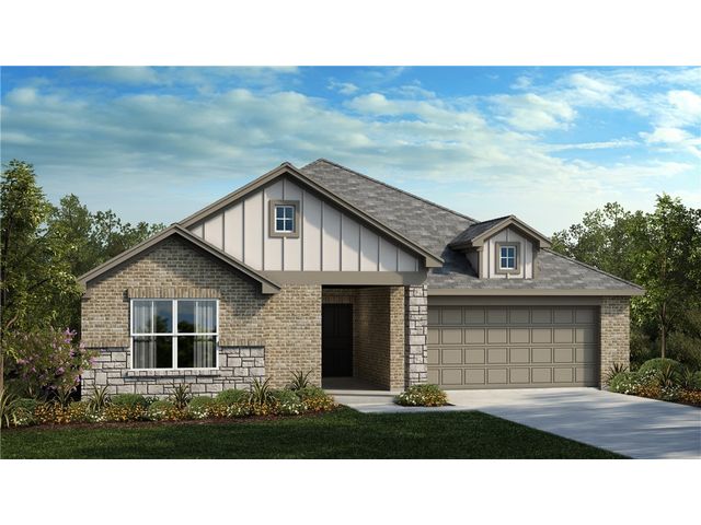 SPECIAL FINANCING AVAILABLE! **THIS HOME FEATURES OVER $59,000 IN UPGRADES!** The Driskill is an exciting new 1-story in our Encore Collection. This south facing home offers 4 bedrooms, 3 full baths, study, and a 2-car garage with added storage. The open kitchen features our trademark immensely sized kitchen island upgrade with trash can pull- out cabinet and drawer banks, Silestone quartz counters, 42" white shaker style cabinetry, and stainless-steel appliances with 5-burner cooktop. This home is graced with luxury vinyl plank floors for durability and elegance. The homesite is 8,218 sq ft and offers an oversized covered back porch with room for a pool, dog run, and garden!