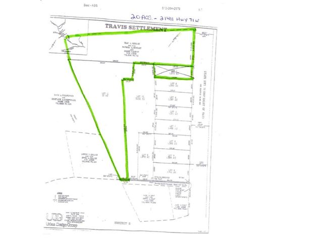 20 Acres with 400 ft frontage in the dynamic, fast-growing, Hwy 71W growth corridor. Consisting of (2) ten Ac tracts - 1 fronting Hwy 71 and 1 fronting Reimers Peacock Rd (see plat) Excellent Development tracts at grade level with great visibility and views of Lake Travis. Unrestricted and priced to sell at under $6.54SF. Older (tear down) home on back of property occupied - Do Not disturb tenant - dogs will bite. Call agent with any questions before showing.
