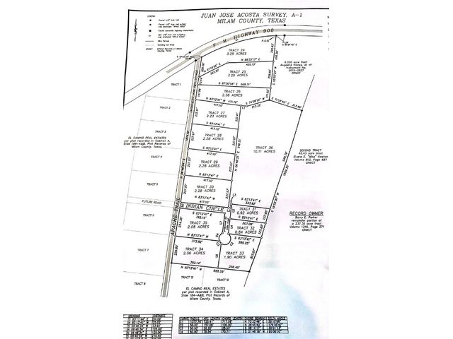 WITHIN AN HOUR TO AUSTIN, 45 MINUTES TO ROUND ROCK, 25 MINUTES TO TAYLOR AND 40 MINUTES TO THE PROPOSED SAMSUNG PLANT! Panaramic views! Other tracts are available from 2.08 acres to 10.11 acres. See pricing sheet for all tracts still available. SWMilam Water Supply Corp. membership to convey with sale of lot, a $9,968 value. Bartlett Electric available. Buyer to pay $50 transfer fee. Apache Trail is paved county maintained road. Seller keeping all water and minerals owned. Restricted- no barndominiums, mobile, manufactured or modular homes allowed. Buyer to pay for survey if needed. Property Improvement Committee formed.