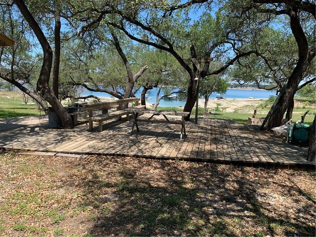 The main channel of Lake Travis offers an expansive 200-foot water view that is truly breathtaking. This property comes with deeded access to the lake, allowing you to come and go with ease. Additionally, it features a well and small septic system, as well as RV hookups, making it easy to enjoy the beauty of the lake anytime. With 1.13 acres of land, you have ample space to build your dream home, and the deeded ability to build a dock means you can fully take advantage of all this property has to offer. You'll love the natural beauty and serenity of this location, with large, soaring trees and a fabulous deck for relaxing and entertaining.