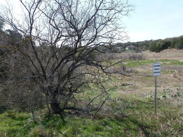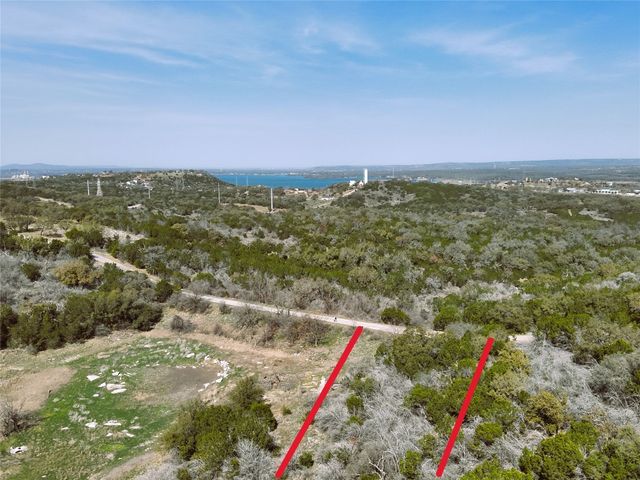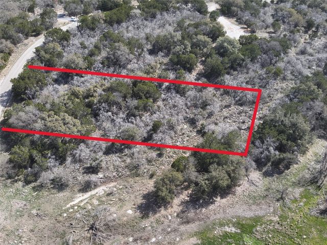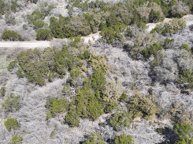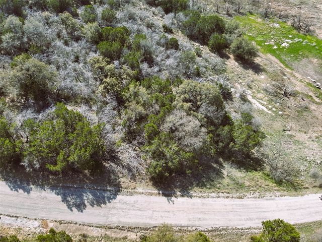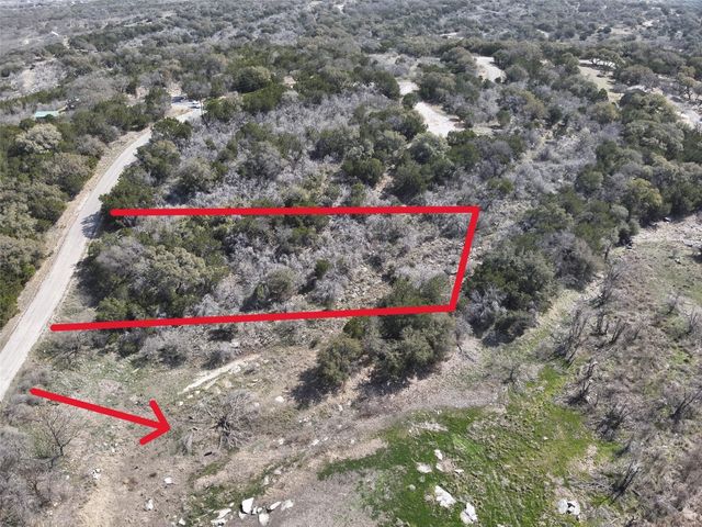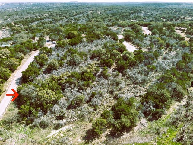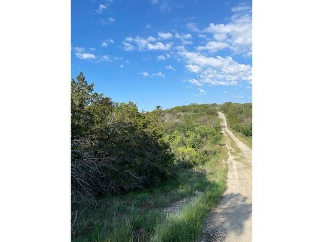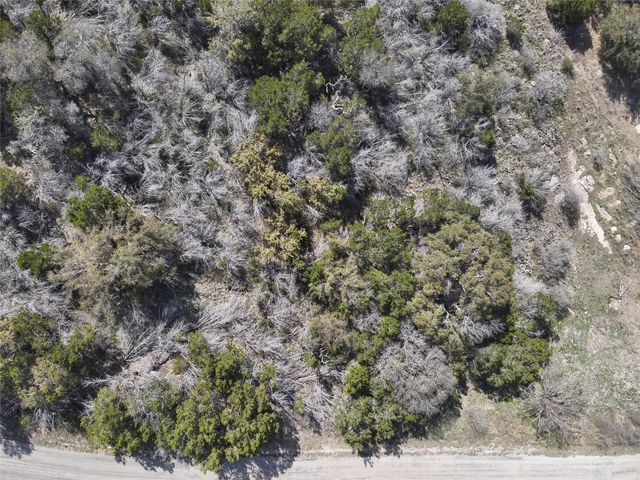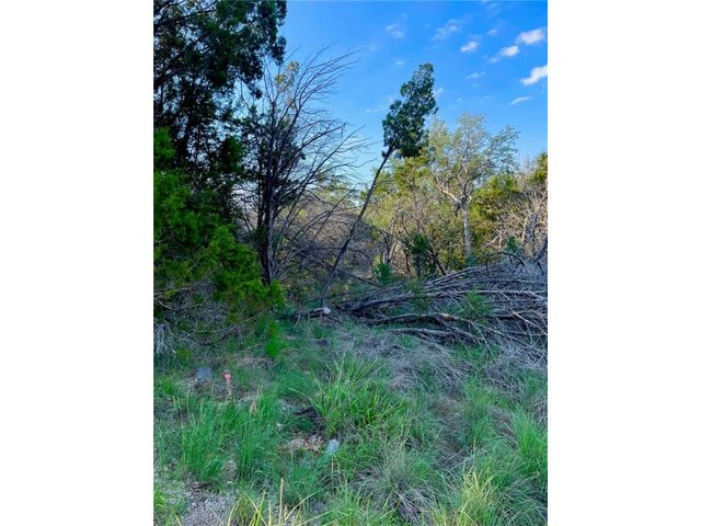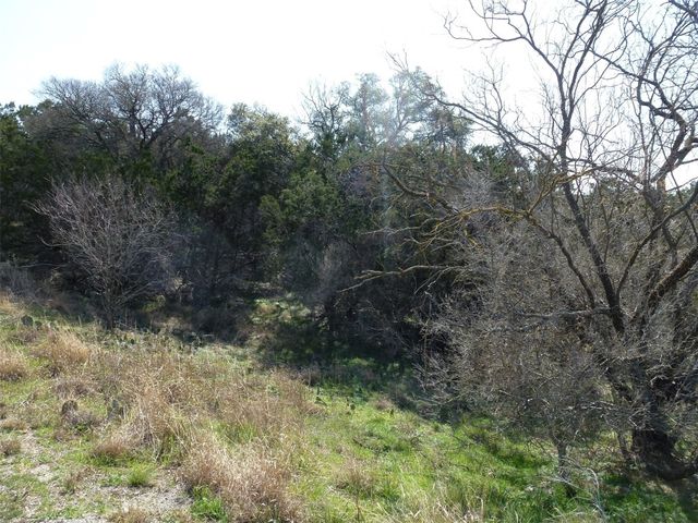 Lot has a slope to back and side down to seasonal creek which now has water in it and has nice Hill country views. Lots of trees. The MLS Parcel MAP shows the property to be on Dew Drop.