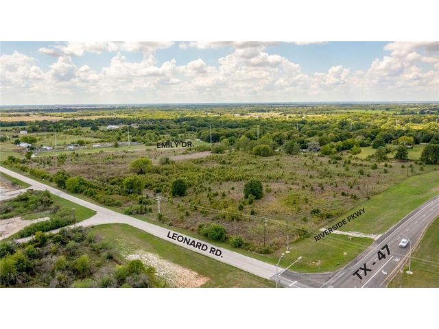 This 18.929 acre tract of land in a Bryan Opportunity Zone at the center of the upcoming Riverside Innovation Corridor project is close to TAMU, TAMU Health Science Center, Easterwood Airport, TAMU Rellis Campus, and the Brazos County Expo Center. It is located on the hard corner of Highway TX-47 (Riverside Parkway) and Leonard Road. There are no pipelines or easements running through the property, no significant elevation changes, and Wellborn Water is available on site. There is a City of Bryan 3-phase transmission line across from Emily Drive at the west boundary line and single-phase electricity on site along Leonard Road. The property provides 810+/- feet of Hwy 47 (Riverside Parkway) frontage, 1300+/- feet of Leonard Road frontage, and 700+/- feet of Emily Drive frontage. The City of Bryan has 2023-2025 planned sewer line upgrades and extensions. Targeted for massive growth in the next 2-5 years, this area is prime for investment.
