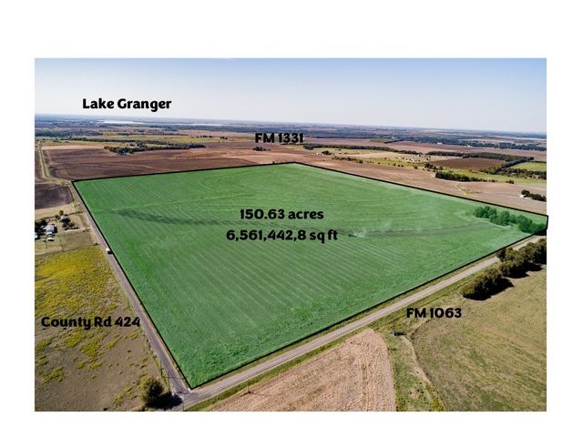 Investors come check out the amount of road frontage, two sides road frontage with electricity and waterline available. No Restrictions the possibilities for this tract can be many. AG-Exemption is in place with crops currently being produced on this heavy Blackland soil. Approximately 2,400 foot of road frontage on FM 1063 and approximately 2,500 foot on CR 424.