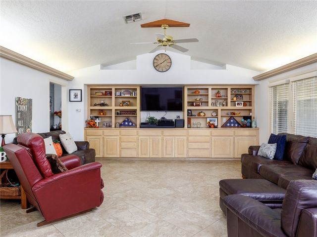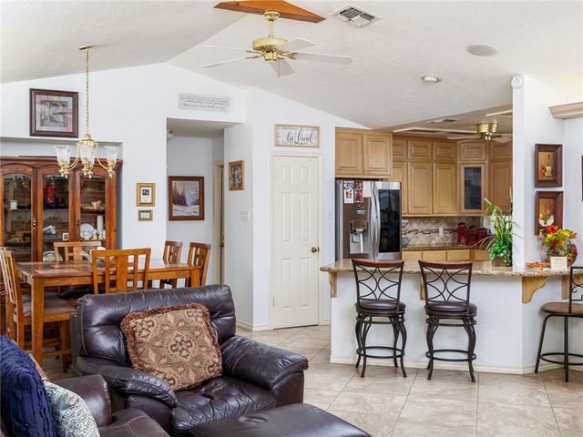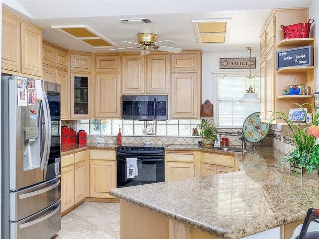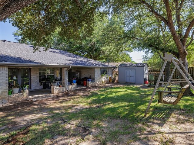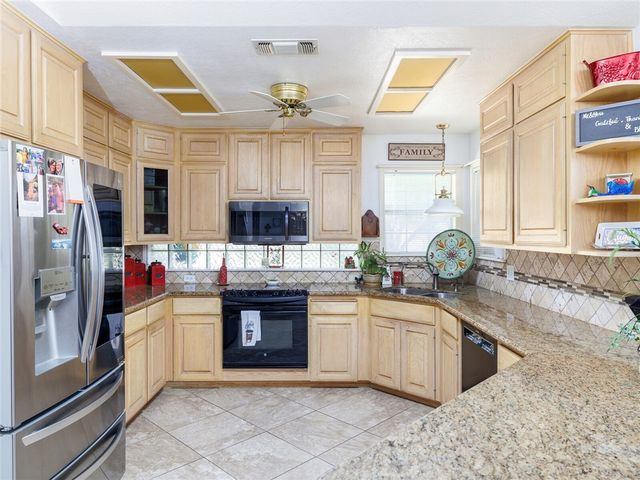 Better than New! Executive One Story with great street appeal. Home features 3 bedrooms and 2 baths. The kitchen features custom cabinets, granite counter tops with designer backsplash tile. Open Kitchen/Family/Dining – perfect for entertaining. There is a granite bar top island for an additional eating area. Beautiful high end matching appliances with range and microwave. Large dining area with built in nook for your treasured china. The dining area also features beautiful crown molding with lighting above giving it that upscale style. The living room features a wall to wall built-in cabinet with space available for your flat screen TV and stereo equipment. The master bedroom features a lighted ceiling fan and built in vanity cabinet. Nice size secondary bedrooms. Large indoor utility with built in cabinets for storage and additional space for a large freezer or refrigerator. Exterior backyard features oversized covered patio overlooking large mature trees. The backyard is completely fenced. Backyard shed ready and available for all yard tools so that you can use your 2 car garage and 2 car carport for your cars. Call for an appointment.