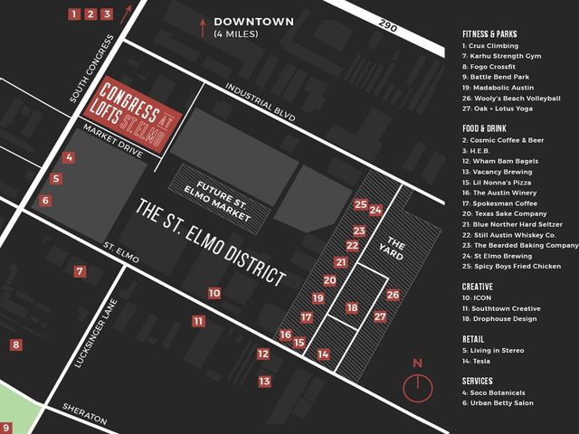 Now under construction! From the burgeoning St. Elmo district of South Congress, Congress Lofts offers downtown high-rise luxury with the timeless look and feel of warehouse-style artist lofts - open space, high ceilings, and light pouring through expansive windows. Homes feature modern industrial textures, Italian-made cabinetry, and state-of-the-art Bosch appliances. Life-enhancing amenities include a gallery-style lobby flanked by an inspiring library lounge and a generous courtyard with sparkling pool, outdoor kitchen, cozy fire pit, and multiple seating areas just right for gathering with friends.
