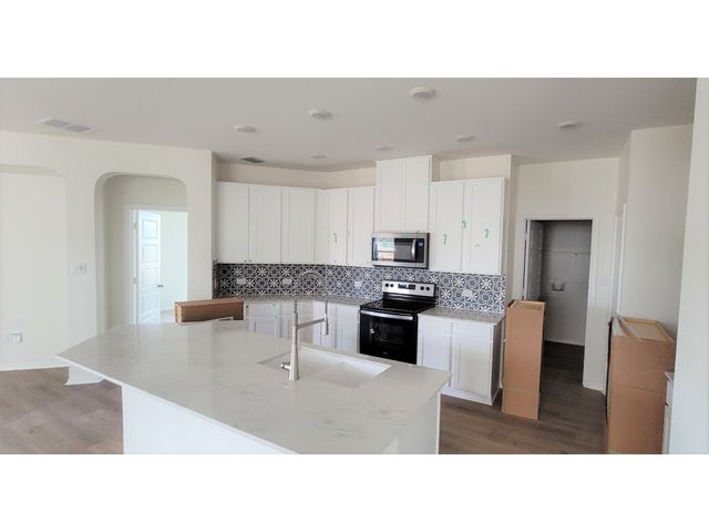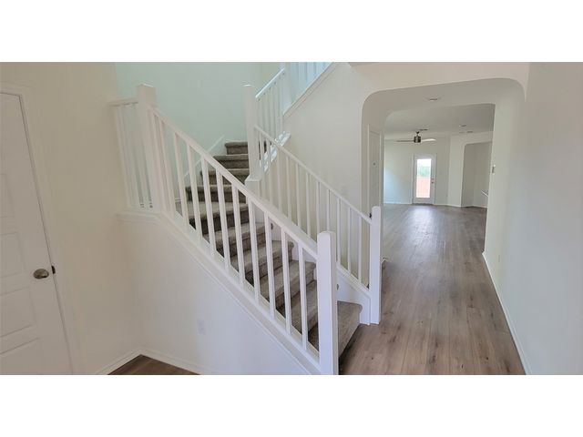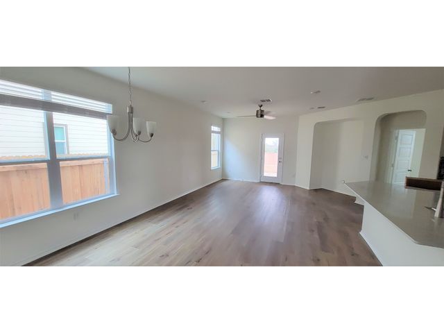**BUYER INCENTIVE AVAILABLE, SEE SALES TEAM FOR DETAILS** This lovely, two-story home features an open floor plan with 9-ft. first-floor ceilings and a spacious great room. The modern kitchen showcases Woodmont® Shaker-style maple 42-in. upper cabinets, Silestone® countertops and tile backsplash. The downstairs primary suite boasts a walk-in closet and connecting bath that offers a dual-sink vanity, marble garden tub and separate shower with tile surround. Upstairs, the loft provides room for study or media area, while the open game room offers space for play. Finishing touches include an expanded garage, plush carpeting at loft and bedrooms, vinyl plank flooring at kitchen and great room, tile flooring at baths, Sherwin-Williams® zero-VOC interior paint, cordless blinds and ceiling fans at great room and primary bedroom. Entertain family and friends on the covered back patio.