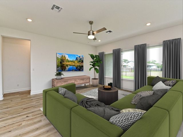 Entertain in style and live in luxury in the impressive space of this lovely home. The Shane's open concept floor plan offers a dynamic opportunity to design your ideal lifestyle space. The ample storage and prep room make the gourmet kitchen perfect for hosting memorable feasts for every occasion. Create an organized home office or an inspiring art studio in the versatile study. Each extra bedroom has unique features that make it a great place to thrive. Your tremendous Owner's Retreat provides an everyday vacation that includes a pamper-ready bathroom and a sensational Super Shower. The garage has great space too with three car spaces and a fourth for storage. Of course, the Shane's best feature is its backyard view of the Colorado River. Whether you are enjoying a morning sunrise or a quiet evening in the shade, you cannot miss with this popular 4 bedroom, 3 bath new home. Contact the David Weekley Colony Riverside Team to learn about the amazing community amenities you'll enjoy after moving into this lovely new construction home in Bastrop, Texas. The Colony Riverside is within close proximity to ABIA and employers such as Tesla, Space X, the Boring Company and X. Our EnergySaverâ„¢ Homes offer peace of mind knowing your new home in Bastrop is minimizing your environmental footprint while saving energy. Square Footage is an estimate only; actual construction may vary.