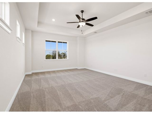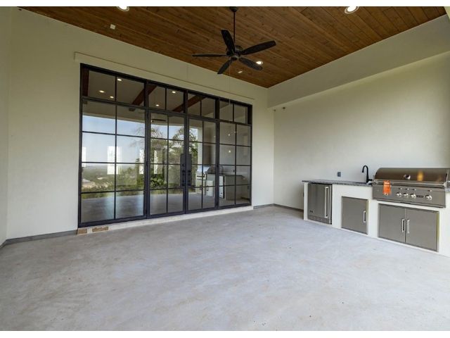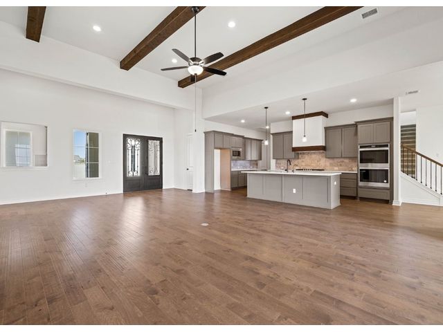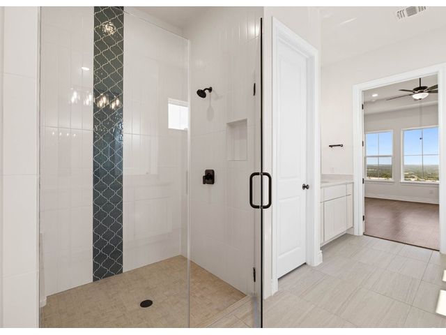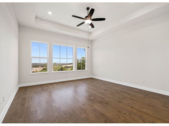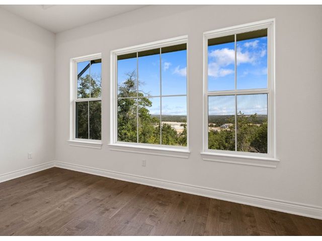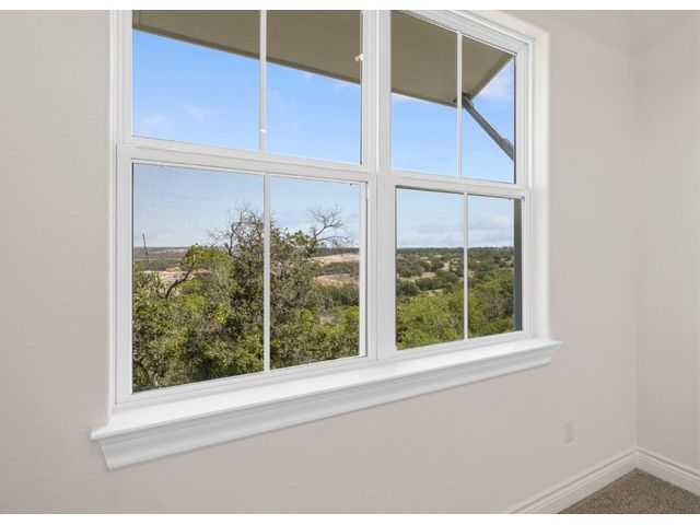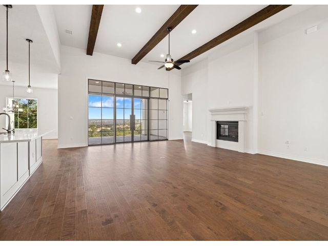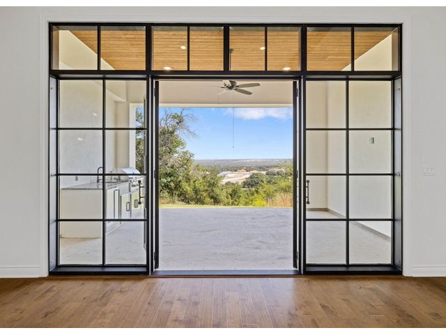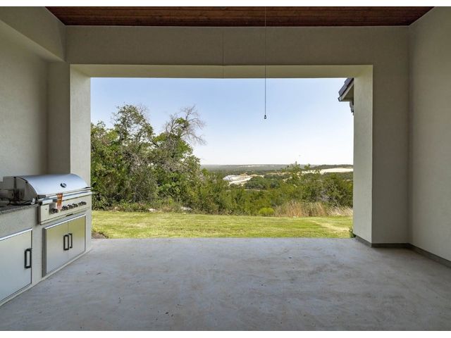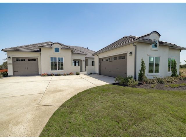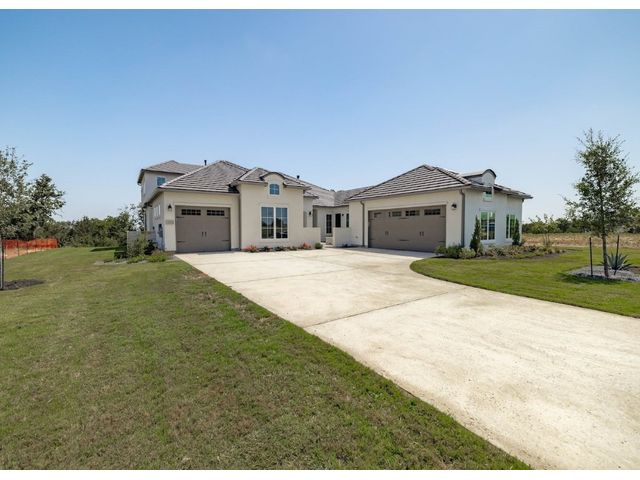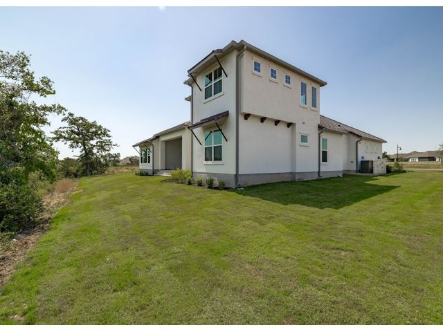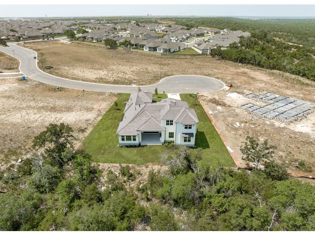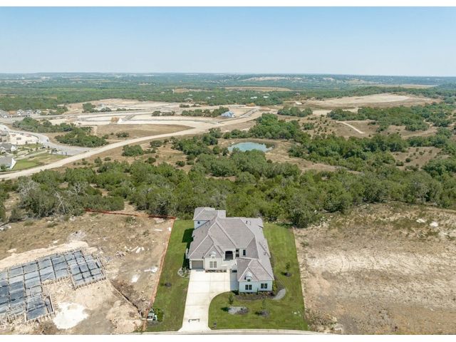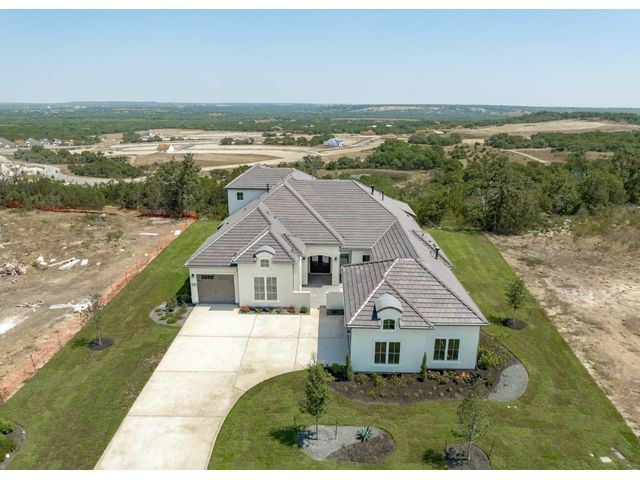 Presenting 132 La Ventana Drive, an estate home with breathtaking panoramic views of the Hill County. 105' wide homesite with full sod and irrigation. The 3,835 sqft home features an entry courtyard with firepit for entertaining. Guest will enjoy the separate guest suite with its own private entry, bathroom, kitchenette, and separate 1 car garage. The main home features a dedicated office with French doors, wet bar, 4 bedrooms, and a game room. Entertainer kitchen with soft close doors and drawers and a wood vent hood above gas cooktop. Luxe primary bathroom with double vanities, a freestanding tub, and a frameless glass shower. Take in the sunsets from the covered back patio or the comfort of the Great Room with 14' tall ceilings and wood beams. An entertainer's dream!