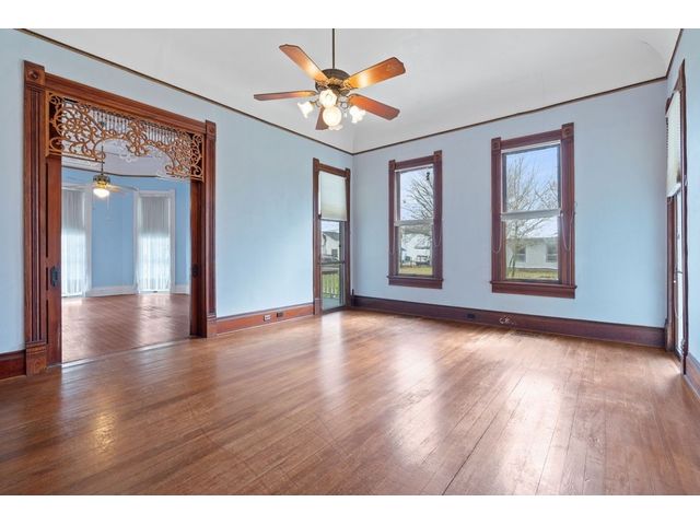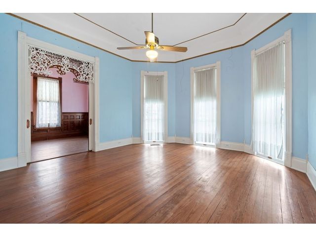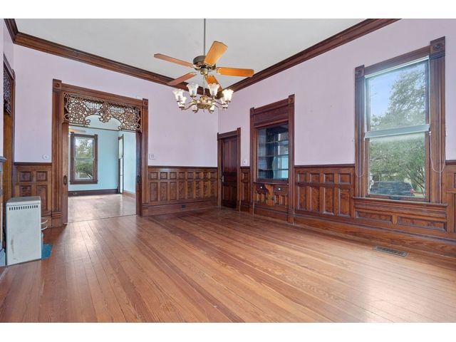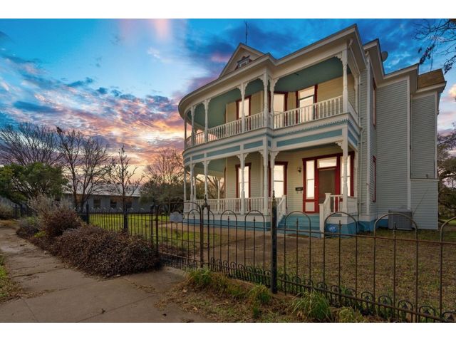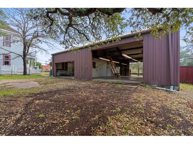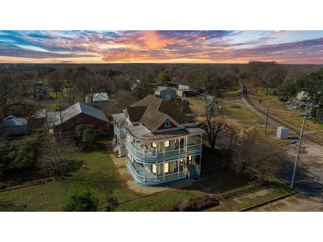 Brand new slate roof! 8 car garage has a pit, a full bath, kitchenette, upstairs level, and is insulated! House has cellar, sprinkler system central AC, plumbing and electrical has been updated, cistern, and is zoned commercial/residential. Zoned commercial and residential, this 2-owner property boasts a working elevator, working cistern, a cellar, floor to ceiling windows, 2 wrap-around porches, 2 back porches, a ramp, a library with a rolling ladder, intricate woodwork to include working pocket doors, detailed doorways, a beautiful built-in hutch, central A/C, 4 beds, 2.5 baths, an 8 car garage complete with a pit and a full bath, and much, much more. From the moment you pass through the elaborate front door and see the stairwell, you will be blown away and fall in love. Situated on 2 lots and less than a block from the town square, this property would be ideal for an AirBnB, bed and breakfast or just make it your home. See property website for more details in "Documents" tab.