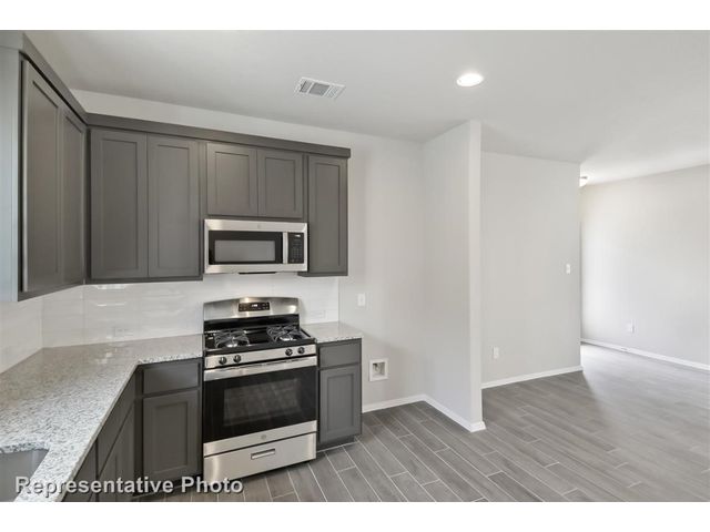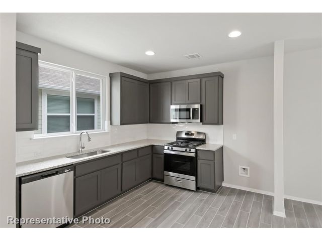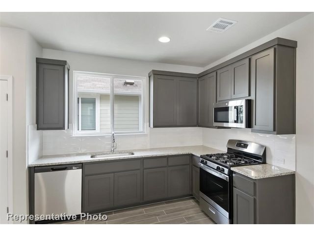 MLS# 1749197 - Built by Brohn Homes - Ready Now! ~ Call onsite for more details. Open floor plan concept. Lots of windows and natural light. Granite countertops, gas range, and pantry in kitchen. Brown shaker-style cabinet with nickel hardware in kitchen and bathrooms. Raised bathroom vanities with silestone countertops. Walk-in closets and wood-look vinyl and carpet flooring. Community is ONLY 6 minutes from I-35. Great for commuters to Austin! Resort style pool included in HOA! *Photos for representation only*