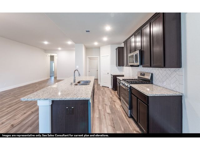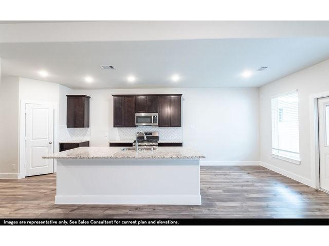 The elegant Sioux plan holds three bedrooms, two full bathrooms and an open kitchen/breakfast area!