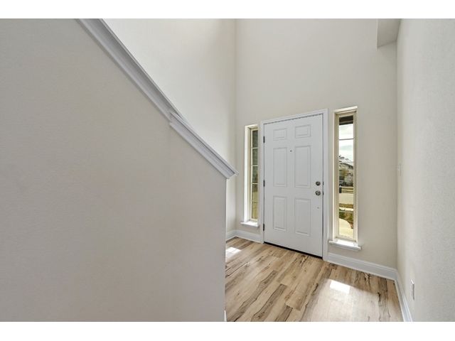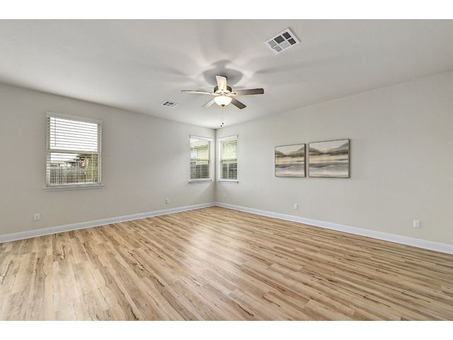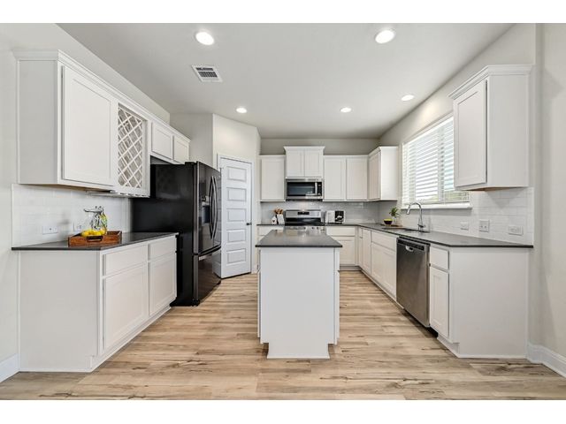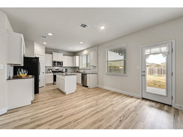 Welcome to your new home! Nestled in the heart of a charming master planned community in San Marcos, Texas, this cozy 4 bedroom property is less than 2 years old and is ready to be filled with love and memories. As you step inside, you'll be greeted by the warmth of the luxury vinyl plank floors throughout the downstairs living areas, creating a homey and inviting atmosphere. The generously sized bedrooms each feature walk-in closets, providing ample storage space for all of your essentials. The primary bedroom is the perfect place to relax and unwind, with not one, but two walk-in closets, providing plenty of room for your belongings. You'll love curling up with a good book in this peaceful retreat. Step outside to your own little oasis, complete with a covered patio and a good-sized fenced-in yard, perfect for hosting family barbecues or enjoying a cup of coffee on a lazy Sunday morning. The in-ground, programmable sprinkler system makes it easy to keep your lawn looking its best. This charming property is located in a wonderful area, with plenty of nearby amenities, including shops, restaurants, and entertainment options. Come and make this inviting home your own today!