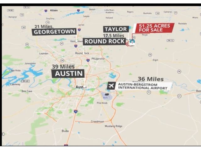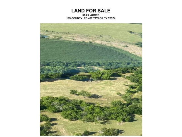 Excellent investment and/or development opportunity in booming Taylor, TX! 51.25 acres of unrestricted land are currently ag exempt. Minutes away from the Samsung Factory! The opportunities are endless. Long lean farm with no point rows. The backside offers a beautiful pond with shade trees. The seller has a survey available upon request, the property is serviced by Manville Water supply, and the electricity by Oncor company. The septic is registered with Williamson County. Metal Building is approx 100X50. You do not want to miss this fantastic opportunity!!! 51.25 unrestricted acres of land. Taylor is growing exponentially, Samsung has decided to build its 17 billion dollar chip plant and plans to invest 200 billion in the Taylor and Austin area. This property is minutes from Hwy 95, HEB & Walmart, restaurants, hospitals, Williamson County Expo, Taylor airport, Taylor ISD, Hutto’s Megasite” and so much more. Round Rock is a short 30-minute commute, and Downtown Austin is 40 minutes away. Low Tax Rate!