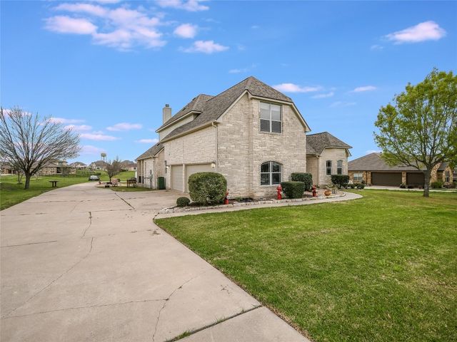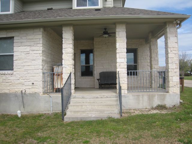 This custom-built home with an additional separate work/wood shop offers exceptional value. The all-masonry shop has two large bay doors, concrete slab and a huge second floor storage area (approx. 2500 sq ft per building plans) The 1-acre lot sits on a point of the neighborhood offering views of the lake. Upon entering this home, you will see rich hardwood floors, large windows offering lots of light and great color tones. The first-floor features two bedrooms with easy access to the kitchen, dining, and family areas. The second level offers three bedrooms, two full baths and a huge bonus room. Other interior features include a spacious master suite, large secondary bedrooms, two separate dining areas and ceiling fans throughout. The kitchen has granite counters, center island, stainless steel appliances with double oven and updated lighting. Installed Solar panels offer efficient Green Energy. The home has a recent roof replacement and interior painting. The side entry 3 car garage has plenty of storage area. A large patio with a beautiful open backyard on a deep lot provides plenty of space for outdoor living, dining, and entertaining large groups or smaller family gatherings. The home is surrounded by gorgeous mature shade trees, landscaping, and native Texas plants. The HOA Park includes covered picnic tables and a fishing pier. Just great, quiet country living. Nearby I-35 and SH-130 offers easy access to Hutto, Round Rock and all points in Central Texas.