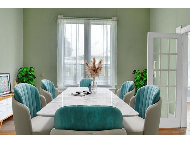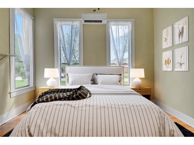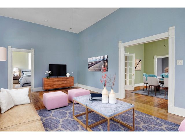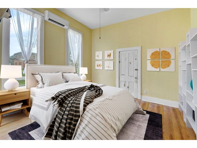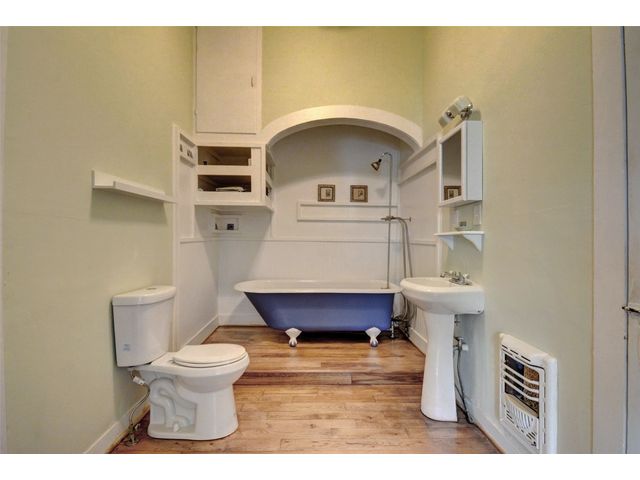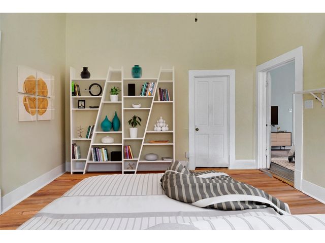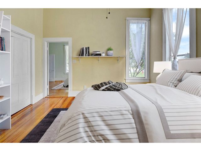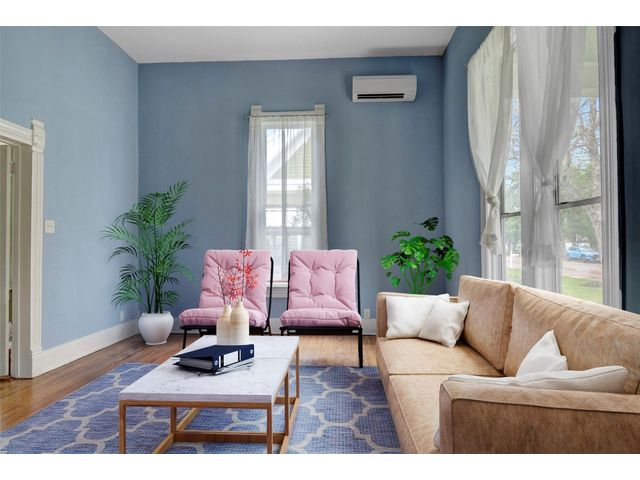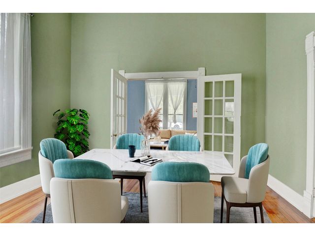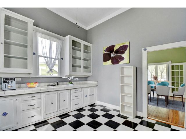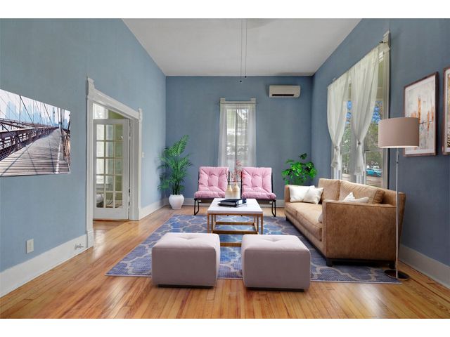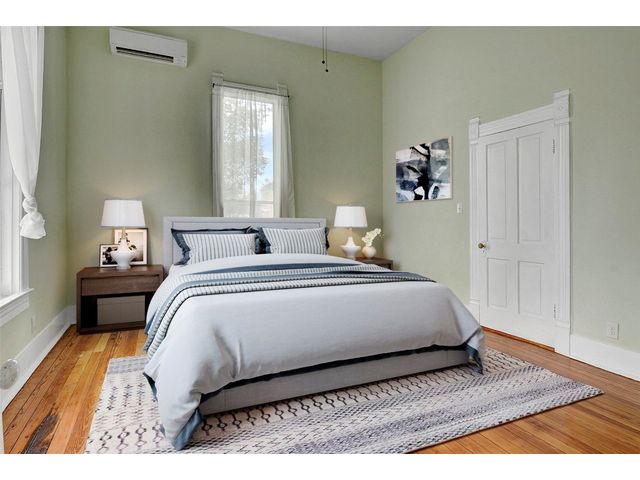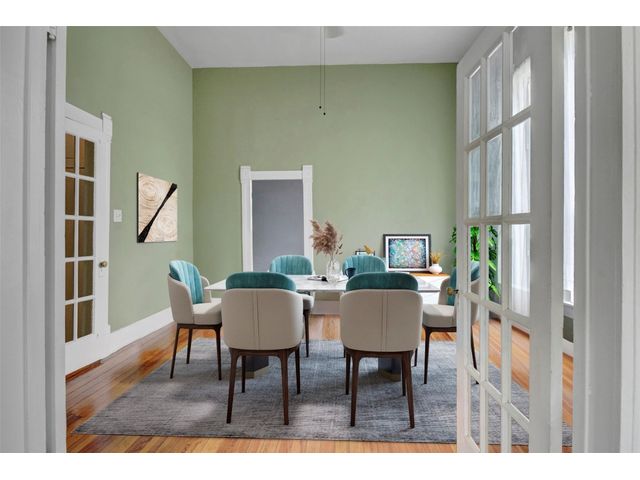 Timeless Classic! Step back in time and admire the Craftsmanship of this move in ready home, wonderfully located in the sought after historic district on a large corner lot! Enjoy the bright and open rooms, large windows and original decorative trim on interior walls with 12ft - 14ft ceilings throughout the house. The front door has stained glass and transom. This home retains the period correct details original to the house while incorporating essential modern upgrades such as the metal roof, house completely rewired in 2018 and is up to code with 6 smoke detectors. Stay comfortable with the incredibly efficient 5 zone Daikan mini split system (installed in 2022 comes with a 10 yr warranty) that allows heating or cooling of individual rooms, saving money monthly without having to heat or cool the entire house at once. The Hardwood floors were refinished in 2022. The interior was repainted in 2021 and the exterior was repainted in 2022. Enjoy the Cast Iron claw foot bathtub in the main bathroom. The detached 2 car garage is has an attached 250 SF workshop. The garage space is on a cement slab, and could possibly be converted to a rental living space as electricity, water and sewer fixtures are at the garage exterior. The next owner of this home will be just the fourth owner of this classic piece of downtown Smithville history! You will be within walking distance of historic downtown antique stores, shops, restaurants and Train park. Note: This home was virtually staged.