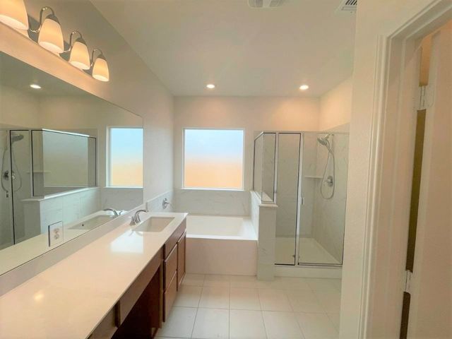 **BUYER INCENTIVE AVAILABLE, SEE SALES TEAM FOR DETAILS** This lovely, single-story home showcases an open floor plan with 9-ft. ceilings and a spacious great room. The stylish kitchen features Woodmont® raised-panel 42-in. upper cabinets in Pebble, Silestone® countertops in Bella and tile backsplash. The primary suite boasts a walk-in closet and connecting bath that offers a dual-sink vanity, garden tub and separate shower with tile surround. Finishing touches include plush carpeting at bedrooms, tile flooring at kitchen, great room and baths, Moen® faucets, Sherwin-Williams® zero-VOC interior paint and an ecobee3 lite smart thermostat. The back patio provides the ideal setting for summer barbeques or family gatherings.