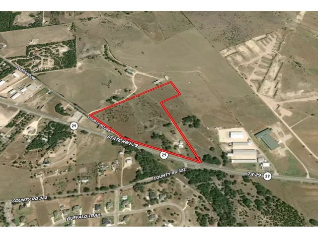 Prime Investment opportunity in Liberty Hill with both Commercial and residential potential. Property with approx 1112 ft frontage on Highway 29 and 678 feet on County Road 266, with approx 17.2 acres in Williamson County and 2.8 acres in Burnet County. Property west of Butler farms subdivision and Liberty Hill High School. Improvements include a 1686 sft home with a detached workshop/garage, well and septic on site. Currently home leased out for short term lease. Buyer to do their due diligence and verify info.