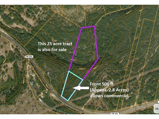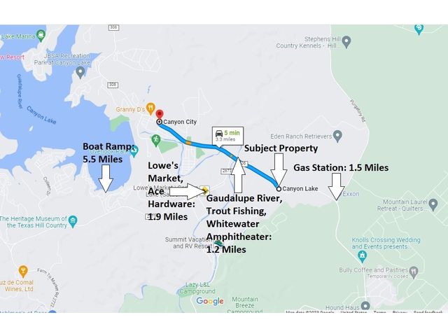 An extremely rare opportunity to own 11.5 acres of stunning hill country land with panoramic views just 5 minutes from Canyon Lake and all the amenities Canyon City has to offer. This parcel can be subdivided and allows for commercial use on the first 500 ft fronting FM 306 which is approximately 2.8 acres. Very light deed restrictions that allow multiple dwellings. The views from the hilltop building site are absolutely breathtaking and look across the valley toward Canyon Lake as well as back up the valley. You can even bring your boat and enjoy the lake from the boat launch just over 5 miles away! This property is perfectly located and can be reached from San Antonio and Austin in just under 1 hour and Houston in just over 3-1/2 hours. The land itself is extremely diverse and offers upland views, creek bottom and a huge variety of timber species. You will be very hard pressed to find a more unique piece of land. For the outdoor enthusiasts there is an abundance of wildlife including whitetail deer, turkeys, fox, bobcats and coyotes. A wet weather creek bisects the land. An incredible opportunity to have your business and home in the same location yet far enough apart to have privacy!