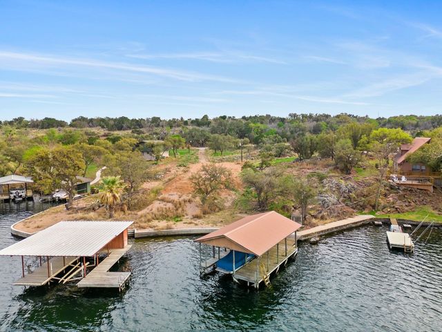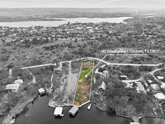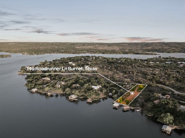 INKS LAKE WATERFRONT LOTS: Extremely rare opportunity to own one of the largest waterfront properties within the highly sought after Roadrunner Lane community. This ready to build on 1.51 acre combined lot includes approx. 272 ft. of stunning open waterfront views, new (2020) concrete retaining wall, 2 covered boat docks, and electricity available on site. Additional infrastructure in place includes a driveway leading up to the future home pad site where granite gravel fill has been brought in. The hard work has already been done, and this property is ready for your future luxury estate to be built! Inks is a quiet 831-acre lake that is revered for its serenity and constant level. Additionally, Inks is part of the Highland Lakes chain located in Central Texas in-between Lake Buchanan (to the north) and Lake LBJ (to the south). Roadrunner Lane is an exclusive and quiet community located adjacent to the well renowned Camp Longhorn. Located just 10-15 miles west of Burnet, and approx. an hour from Austin, the lake is a short drive from restaurants, wineries, grocery stores, shops, and schools.