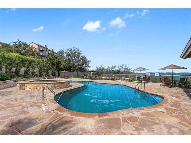 Great Upscale resort-style living in gated community on Lake Travis. Immaculate, updated condo with recent heater handler & duct system, AC condenser, 50 gallon water/heater, frameless MBR shower doors, high ceilings, granite countertops. First level entry with reserved parking in front.Over . Amazing community with 2 pools, sport and tennis courts, fitness center and day dock. Enjoy the amazing sun sets on Lake from covered patio. On site security and property management.