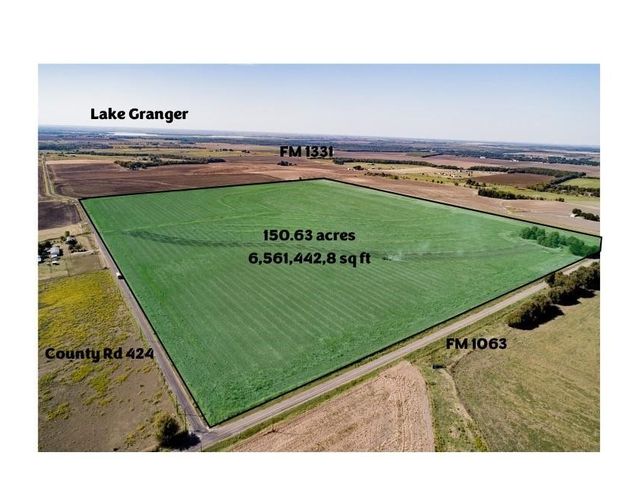 Investors come check out the amount of road frontage, two sides road frontage with electricity and a waterline available. No Restrictions the possibilities for this tract can be many. AG-Exemption is in place with crops currently being produced on this heavy BlackLand soil. Approximately 2,400 foot of road frontage on FM 1063 and approximately 2,500 foot on CR 424. Just down the road is Granger Lake for recreational enjoyment and the new Samsung chip making plant is just 20 minutes away. Future road plans are for the Ronald Reagan Blvd to come down FM 1063 and the extension of Chandler road from Taylor to Rockdale is slated to run just south of this property.