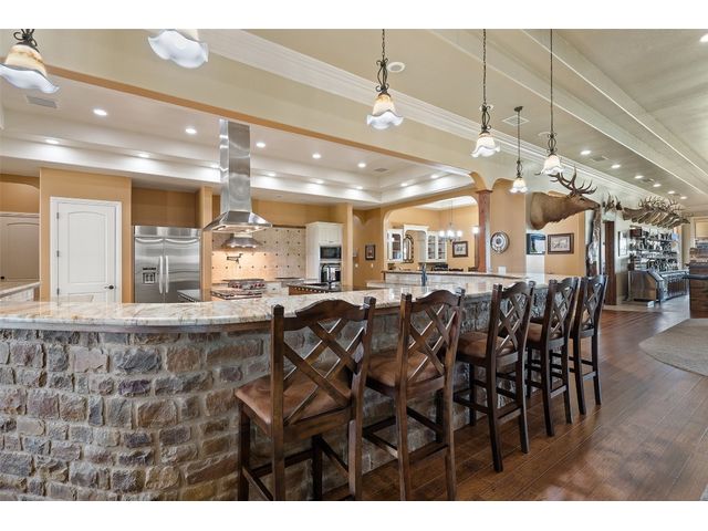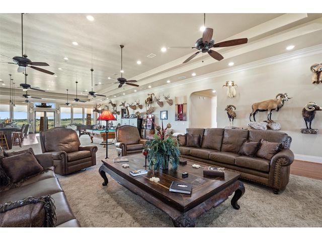 The Underwood Ranch is a remarkable 408.74+/- acre legacy with a convenient location near Lampasas & Austin. It’s diverse topography features, breathtaking vistas, productive bottom land, and native trees. The crown jewel of the ranch is a stunning main house with exquisite craftsmanship, 4 bedrooms, 4 baths, 3 half baths, 2 commercially equipped kitchens, a great room with a massive bar, and a 5-car garage. A barndominium, a foreman's/guest house, and a multi-use building offer additional living and storage space. Abundant water resources, includes stocked lakes/ponds, 7 water wells, private power plant, ensure self-sufficiency. With high fencing, an MLD permit, and a variety of wildlife, the ranch is ideal for hunting. Whether as a retreat, event venue, or family/corporate ranch, the Underwood Ranch is a versatile property that will bring joy every time you enter its gates.