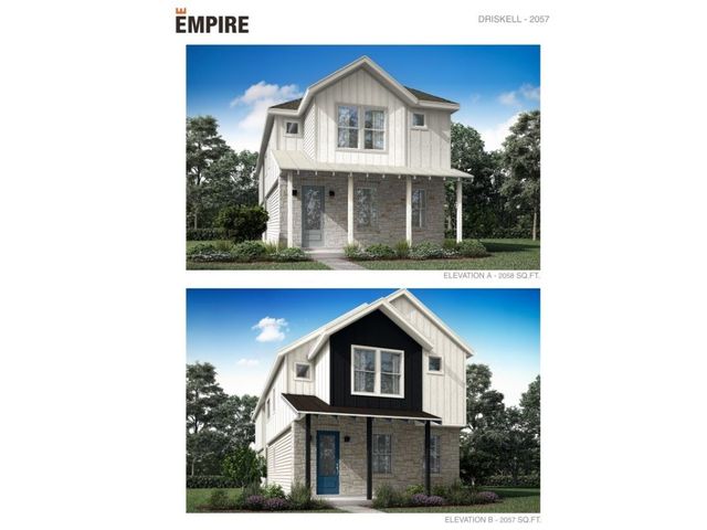 The Driskell is filled with coveted features like a detached 2-car garage and a casita. This is a 3-bedroom, 3.5-bathroom, 2-story home which boasts 2,057 sq.ft. of living space. The open-concept kitchen attached to the dining area and oversized family room is the perfect place to host family and friends alike. A large island makes entertaining easy, along with many windows to keep the space bright. As you make your way upstairs, you’ll find the home’s three bedrooms, including a beautiful primary bedroom featuring a dual-sink ensuite and extensive storage space. A second-level laundry room is also included with this floor plan for the ultimate convenience. **4.99% Fixed Rate financing when you purchase an Empire Communities home in the Austin area & home must close by 9/30/2024. * Please see Onsite for all details - subject to change without notice.**