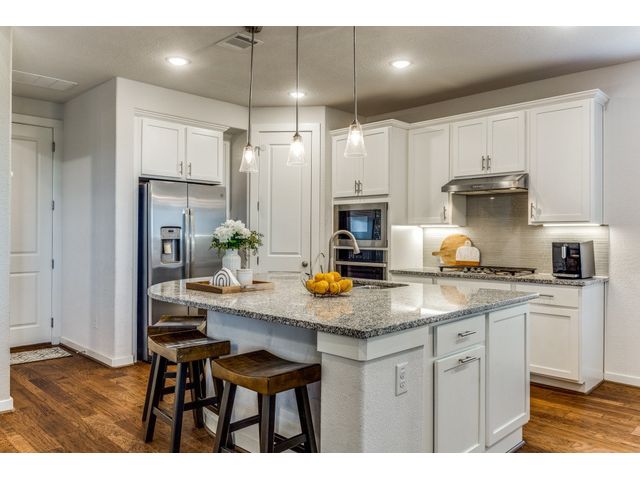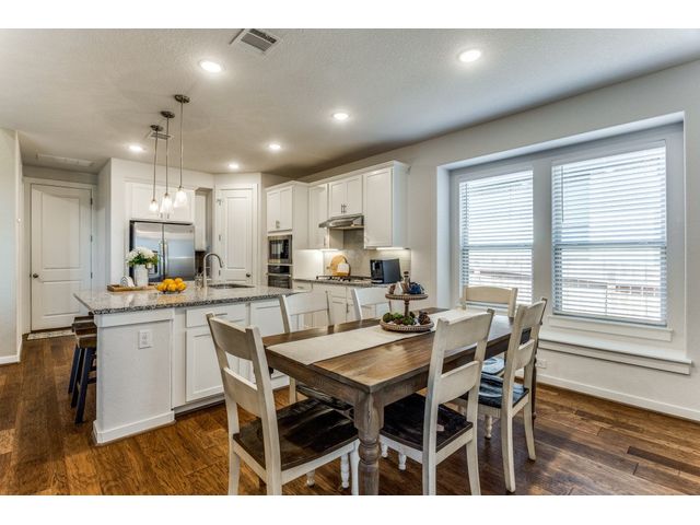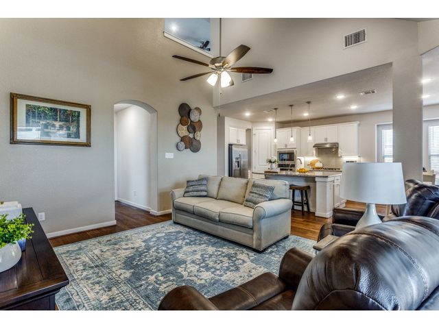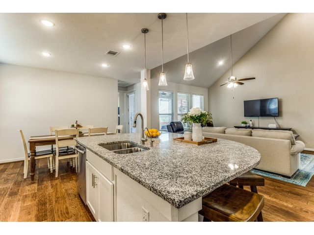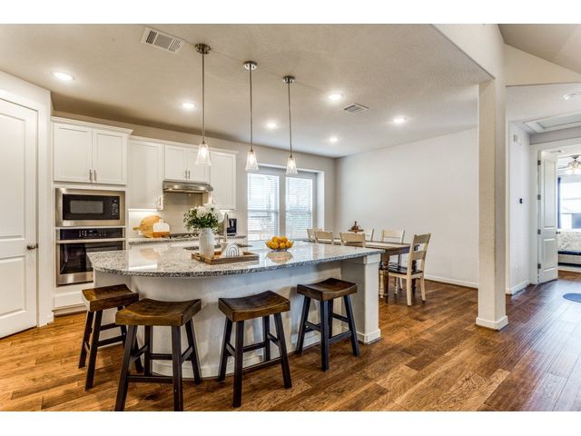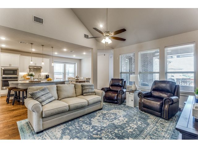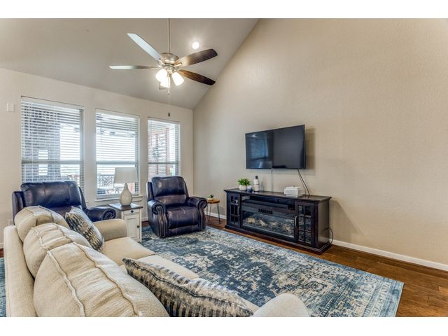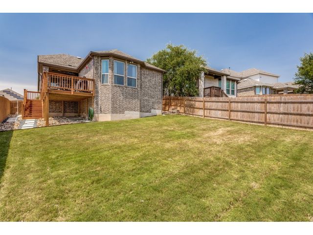 Beautiful Lake side by Tessera Highland Lyndhurst Plan. Substantial rock landscaping in back yard. Many upgrades, hard wood flooring bottom floor, tile in bottom master bath, upgraded carpet and tile on second floor, partial rock added below bricks in front of house. Designer fiberglass door added, added back deck with railing 10x18. One of the best views in Lakeside from back yard, greenbelt view and view of lake when full. Eight foot door package, bay windows, extended patio, custom landscaping, etc. Very nice well maintained house. This was used as vacation house so not much wear on floor, carpet, etc. Great view from bay window in master bedroom.
