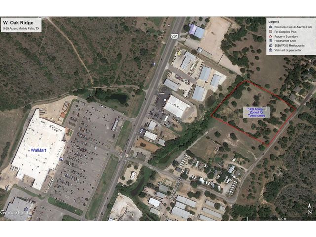 Unique Opportunity for a private residence or multi-family development (with conditional use permit, potentially up to 79 units)! Amazing location in Marble Falls with quick access to everything while enjoying privacy filled with beautiful oaks at an incredible price! Don't miss out on this! Current owners have done a lot of the leg work for the new owner. A few of the highlights for this property include 405’ of Frontage on W Oak Ridge, north side of Marble Falls (Close to Walmart, 281, etc…) as well as a 405’ of Frontage on W Oak Ridge, north side of Marble Falls (Close to Walmart, 281, etc) as well as a New Connector Street coming in that will connect Mormon Mill to Nature Heights. Current zoning is TR (Transitional Residential District) – Which allows for Townhomes, Duplexes, Fourplexes, garden homes and multifamily allowed with Conditional Use Permit. This property Allows a max of up to 68 units. (79 Units with the conditional use Permit for Multifamily). As for utilities, both water and sewer are available to the site and the capacity and LUE’s are confirmed as the City has already done a full utility capacity study which is attached in the documents! See attached documents for site plan!