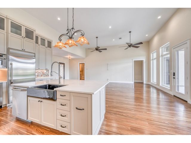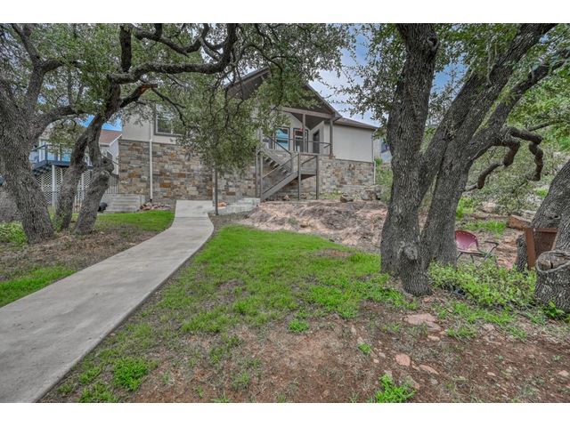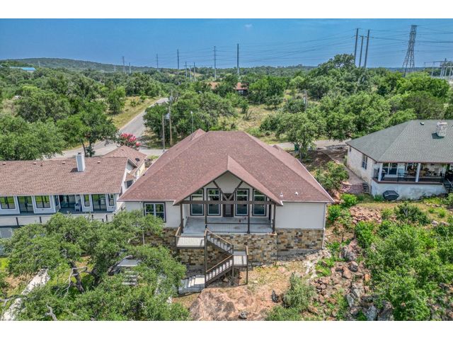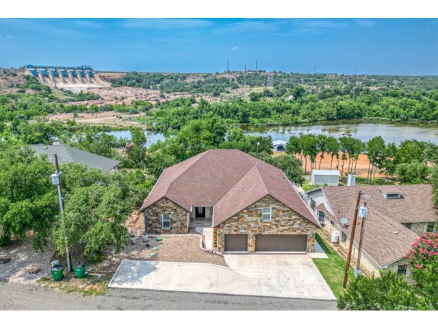 MOTIVATED SELLER! Introducing a breathtaking waterfront retreat on Inks Lake! This custom-built home is a true gem in an idyllic setting on Texas’ legacy lake. Featuring 14-ft ceilings in the main areas, luxury vinyl planking throughout, Uttermost light fixtures, and tons of storage, this home was built with every luxury in mind. The dreamy chef’s kitchen is perfect for everyday cooking or enjoying family and friends! Open to the living area, it features stainless steel Monogram appliances, as well as a gas stove top, an icemaker, soft close cabinets, and a large pantry. The primary suite has a lake view and a spa-like en-suite bathroom complete with a walk-in shower, dual vanities, and a soaking tub. The first floor also includes three secondary bedrooms and two full baths, with one bathroom accessible from the back porch. The upstairs area includes an additional bedroom and a full bath, as well as an oversized storage closet. This home was thoughtfully constructed with two-by-six-inch exterior walls, blown in insulation, and 3 A/C units to help keep the home cool in the summer months. Stroll down to the private dock that includes a boat lift & two jet ski lifts, as well as Wi-Fi. Spend your evenings immersed in the breathtaking Texas sunsets or swimming in the crystal-clear water right off the dock. With minimal boat traffic and calm water, this home will be your own private oasis, perfect for kayaking, paddleboarding, and fishing!