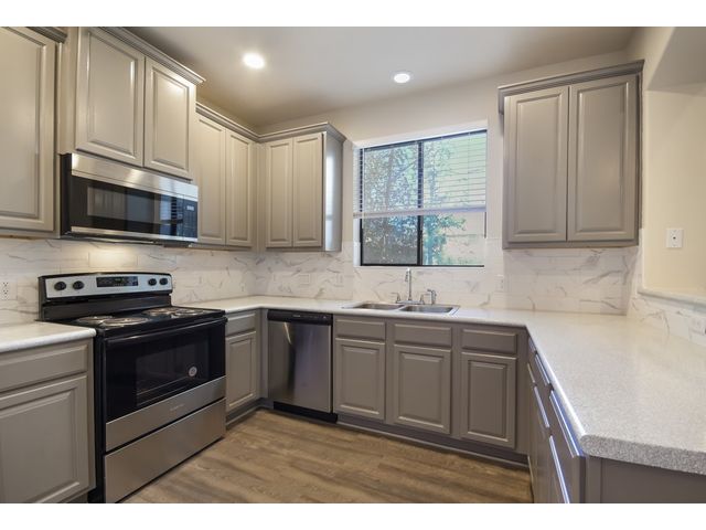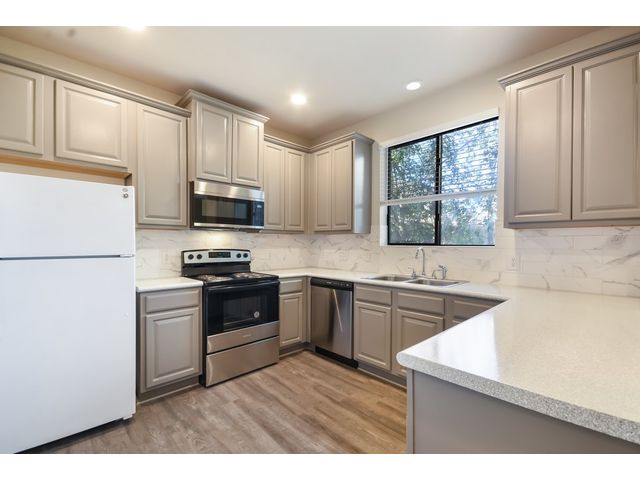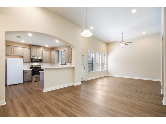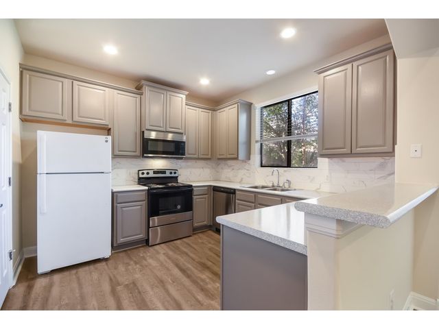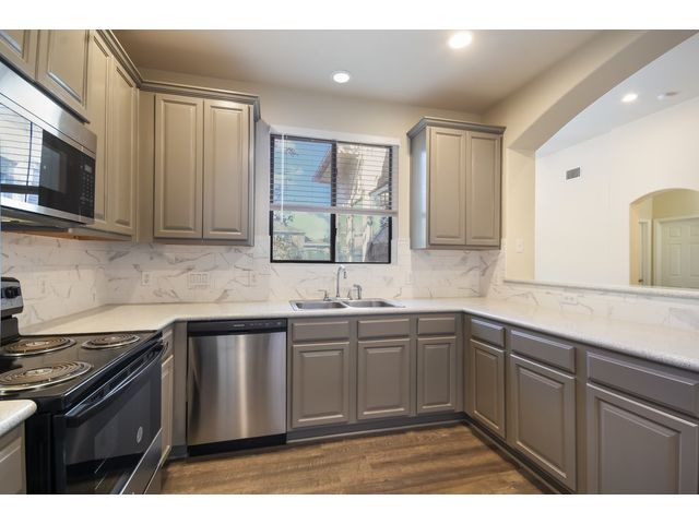 Just completed updates including paint in and out, new appliances, countertops, vinyl wood look flooring, light fixtures, hardware and more!! Walk into the open floorplan with spacious living area, casual dining space and kitchen! Split owner's retreat for added privacy with en suite bath complete with large soak tub/shower! Secondary bedroom's and second full bath with great closet space! Laundry closet off kitchen. Features include great location, updates just completed, attached garage, small yard space with iron fence and more! There is a new developer that has purchased this subdivision, and will begin clean up and building at some point, right now, it is a little bit of a mess!