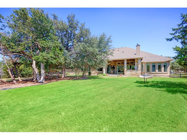 Amazing show place on a double 2.3 acre lot with a park like setting in the highly acclaimed Lake Travis ISD. This home site boasts many trees and an additional one acre plot to expand for your families Muti generational needs. Plenty of room in the backyard to add your own pool and outdoor oasis. The former model home, built by Vintage Estate Homes, features many upgrades including a spacious family room with huge windows, tray ceilings, stone fireplace, huge primary suite with oversized shower, extended covered patio with outdoor fire place and kitchen with gas grill. In addition, the home boasts a sunken media room, game room, walk in pantry, built in book cases, top of the line built in appliances with double oven, guest bedroom with ensuite bath. The home is also equipped with its own well. Property owners and their guests have access to both Travis Settlement private community parks including a natural swimming hole on Bee Creek and a boating and picnic park on the shores of Lake Travis. In addition to the private parks there are many public parks within a short distance of Travis Settlement. The two closest parks are Pace Bend and Canyonlands of Lakeway. Pace Bend is managed by Travis County. The park offers hiking, camping, boating and mountain biking. The Canyonlands of Lakeway, less than one mile from Travis Settlement, offers many miles of hiking and mountain biking trails. Come see this spectacular home for yourself.