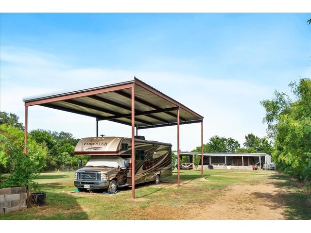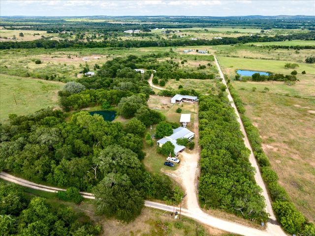 Welcome home to this serene country setting under the trees. You'll never get tired of coming home to this 10 acres at the end of a quiet gravel road. The 3 bedroom, 2 bathroom home is nestled under mature trees, has a covered porch that extends the front of the home, and a carport. An open floor plan with natural light make this home so welcoming! The open faced cabinets in the kitchen, abundant counter space, and views overlooking the pond will win your heart. A large bonus room is just off the front porch--a 4th bedroom, game room, storage, or craft room would be excellent options. The RV Carport measures 35'x20' and has septic and electrical hookups. Just off the lovely back patio is a pond that is stocked with cat fish, hybrid blue gill, and regular perch. Fruit trees stud the property--crab apple, apple, fig, and pear trees all give fruit. The raised bed gardens are ready for your green thumb. Beyond the home is a horse barn with 5 stalls and is cross fenced with a riding pen. The tack room is 12'x13'. The front of the property includes mature live oaks and walking/riding trails but just beyond the tree line are 5 +/- acres of cleared pasture that would be perfect for grazing, building, or recreation. This property is truly magical and you must see it to believe it! Convenient to Lockhart, Bastrop, San Marcos, and Kyle--don't miss this gem!
