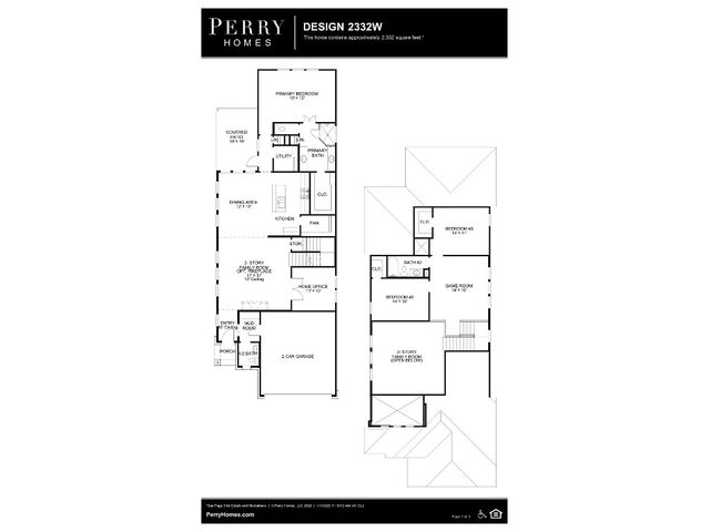 Welcoming front porch. Home office with French doors off of the family room. Two-story family room. Kitchen features an island and a large walk-in pantry. Private primary suite with three large windows that look out to the back yard. Double doors lead to the primary bath with two vanities, a large corner glass-enclosed shower and a large walk-in closet. Second level features two secondary bedrooms and a game room. Mud room and half bath off of the two-car garage.