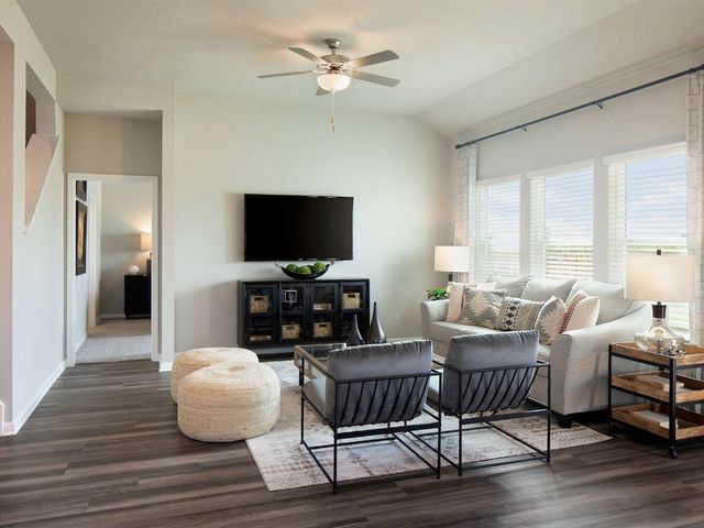 Brand new, energy-efficient home available NOW! The Royal features an open-concept great room, perfect for hosting. Upstairs, use the flex space as a media or game room. White-toned quartz countertops, beige tone EVP flooring with dark gray tweed carpet in our Balanced package. The “Boulevard Collection” in Riverbend at Double Eagle features seven single and two-story floorplans. This beautiful master-planned community backs up to the Colorado river and will provide residents with scenic country living of Cedar Creek, while enjoying easy access to Downtown Austin due to close proximity to Hwy 71. On-site amenities will include a pool, cabana and playscape. Each of our homes is built with innovative, energy-efficient features designed to help you enjoy more savings, better health, real comfort and peace of mind.