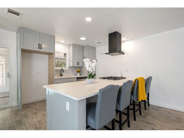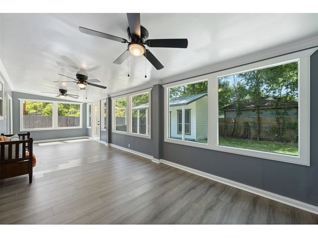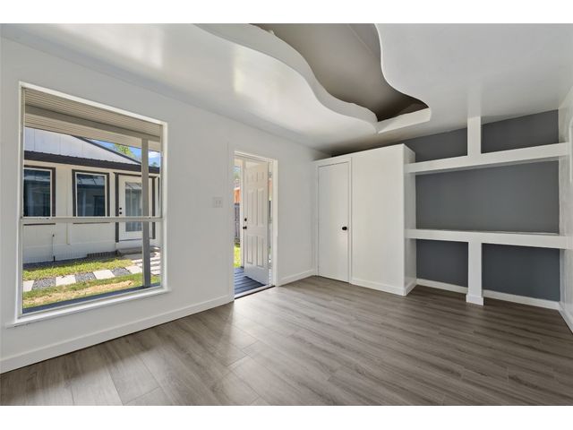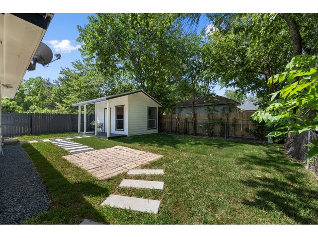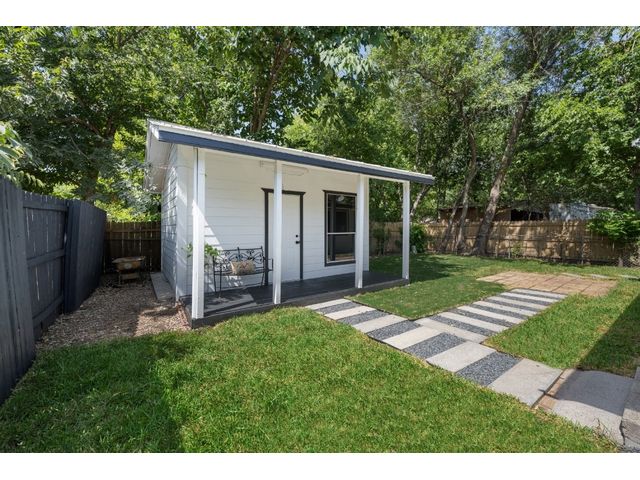 Gorgeous 3 bedroom 2 bathroom home located within 10 MINUTES from DOWNTOWN AUSTIN. This charming FULL OF NATURAL LIGHT open concept home has many upgrades including quartz countertops, custom shaker style cabinets, stainless steel appliances, wood tile flooring throughout entire home (NO CARPET), skylights, custom shower glass, METAL ROOF and so many more. Many recent updates include new electrical, new a/c and a front European style window! Huge private backyard with large trees for shade. Adorable detached separate building that can be used for a workshop/office/gym/gameroom/in-law-suite/guest room YOUR CHOICE. 7.3 Miles from Downtown Austin and 7.1 Miles from Airport.