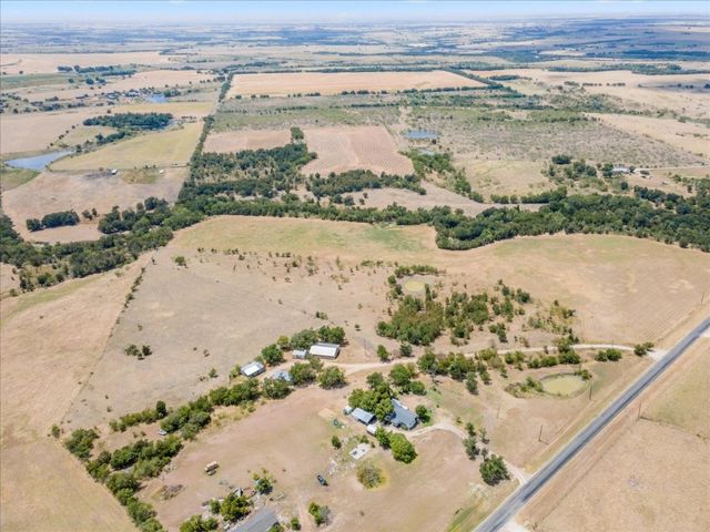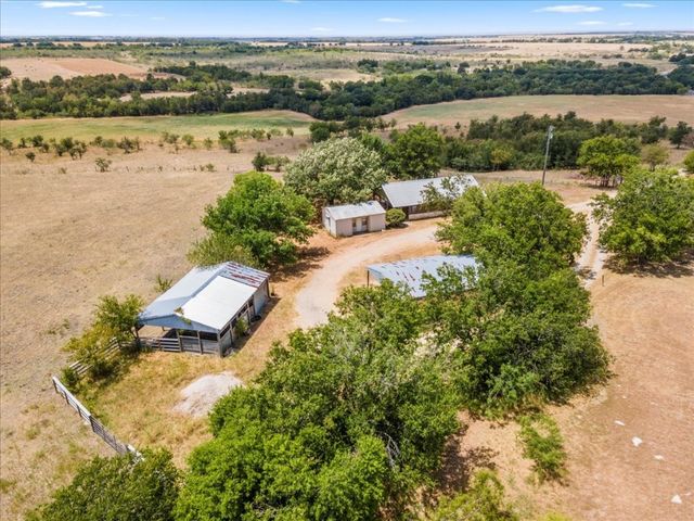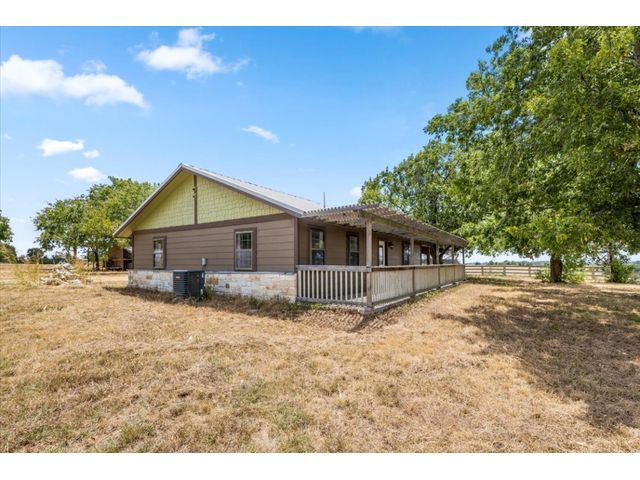 Cozy cabin on the hilltop with 2 bed 2 bath, wrap around porch with great panoramic views of the surrounding countryside, and room for livestock, or crops. House would make a great guest house for someone who wants to build their dream home, and owner could live there while building. Acreage is AG exempt and sellers will offer a lease to allow grazing for their cattle to maintain the exemption if needed. HVAC new in 2019. Septic new in 2017. Water and electric hooked up. Will need satellite for internet/tv. Great location to get out of the city and relax and enjoy the breeze and views from the wrap around porch. House was torn down to studs and rebuilt including a new roof in 2017.