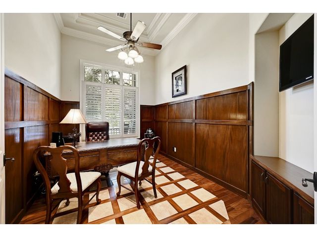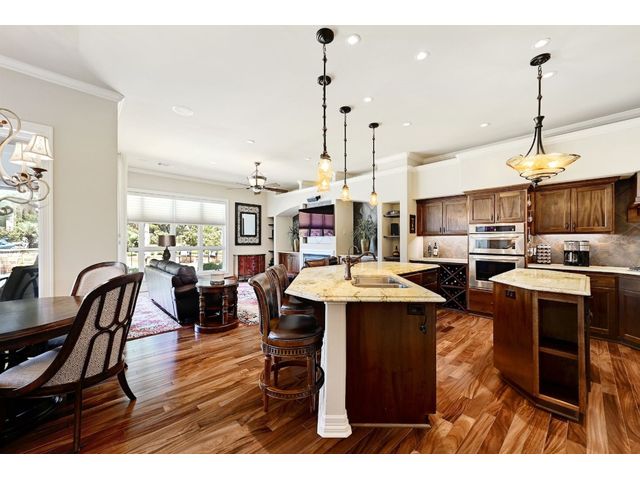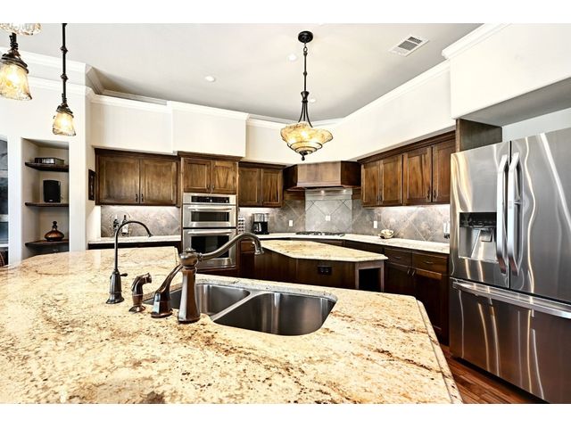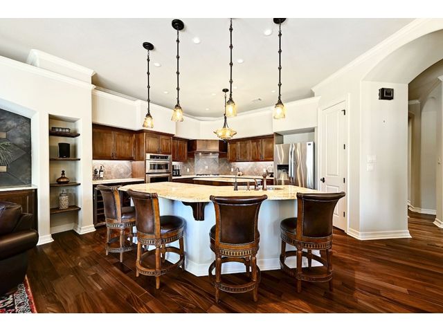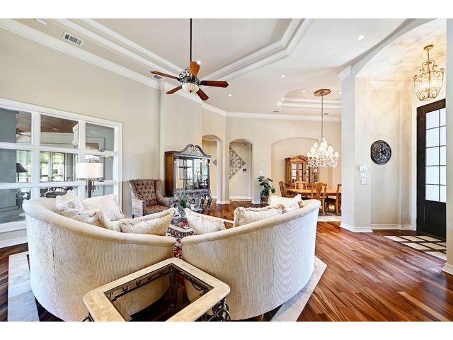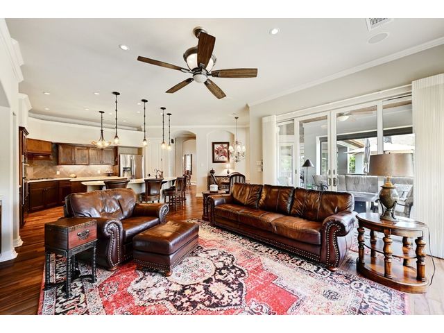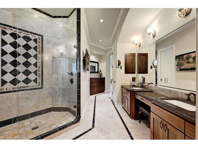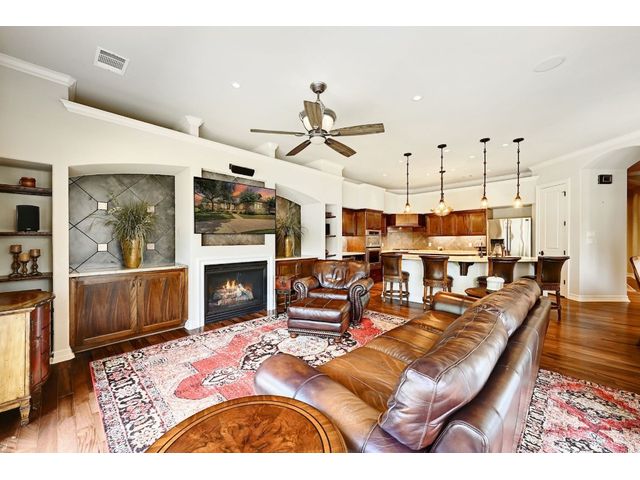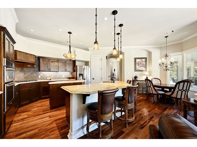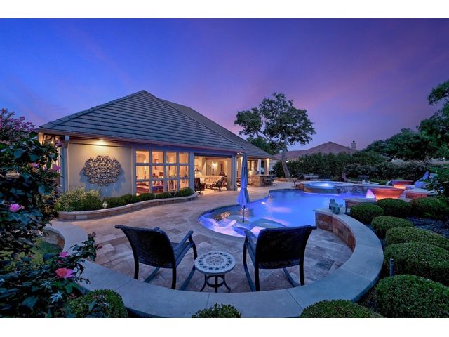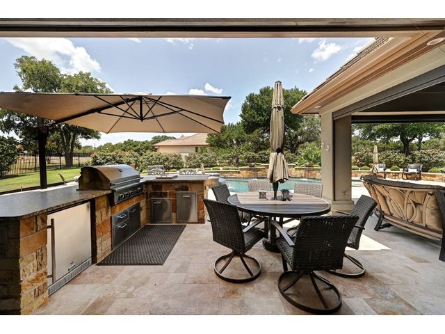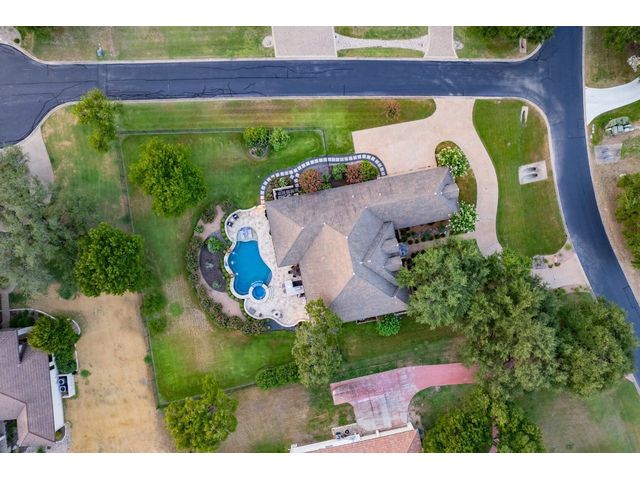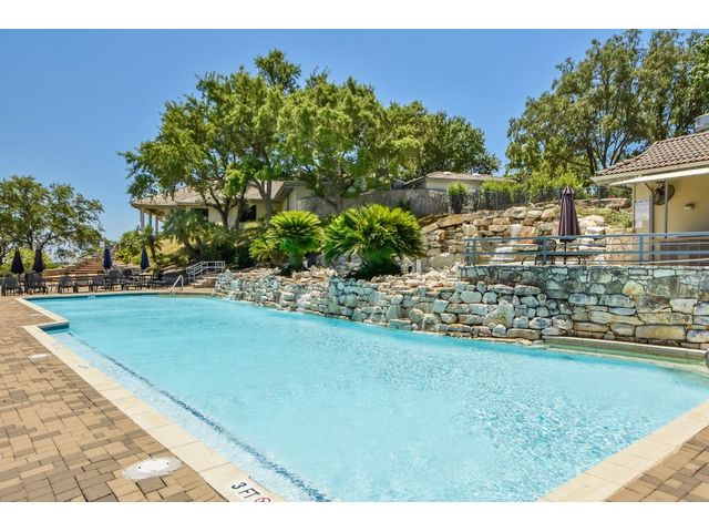 You’ll fall in love with this captivating custom home located in the exclusive gated community of Barton Creek Lakeside. From the minute you step into the inviting entry foyer, you are surrounded by unparalleled quality. This one level home contains a kitchen any chef would love to create in. It boasts beautiful granite countertops, stainless steel appliances, quality lighting, and several eating areas. The family room is warm and inviting with a gorgeous gas log fireplace with views of the sparkling pool and yard. The primary suite is quiet with walls of windows also overlooking the pool and yard. The primary bath is stunning, with double vanities and a jetted tub for relaxing. The home has coffered ceilings and many other upgrades. In addition to the two secondary/guest bedrooms, there is a separate office with cutting edge technology including high speed fiber optics. Recent (2018 & 2021) Energy Efficient HVAC units. The home sits on a .66 acre corner lot with majestic mature oak trees. The impressive custom heated pool was added in 2018 along with a travertine patio, professional landscaping, and wrought iron fenced back yard with Zoysia grass. To complete this backyard oasis, there is an outdoor kitchen with a 36” gas grill, stainless steel cabinets, and an outdoor under-counter refrigerator. Just think of the wonderful memories you could build. The neighborhood has a 24 hour security guard gated entrance, and access to Lake Travis via a boat ramp & marina. The exclusive Omni Barton Creek Lakeside Country Club is located within the gates of the subdivision. It includes an 18 hole Arnold Palmer golf course, stunning pool, clubhouse with gym, tennis courts, pickleball courts, restaurant, and cottages to rent for guests. (Golf and Social memberships are optional) All of this is located in the unique Texas Hill Country within 30 minutes of the Hill Country Galleria, 45 minutes from Austin, and 30 minutes to the picturesque city of Marble Falls.
