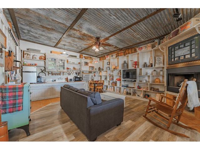 Amazing Live work opportunity…22 +/- acres with 900 liner feet of Pedernales River frontage just outside of Fredericksburg Texas. The property is currently rented out for short term rentals and events. The property features 7 buildings that provide a backdrop as an old western town feel which includes a large dance hall venue. Several buildings are used for living areas with a Silo that is converted to living. This unique property is one that you really need to visit to soak up the atmosphere and details that attract venue and short term rental business.