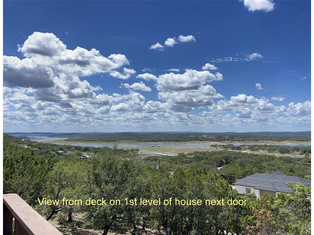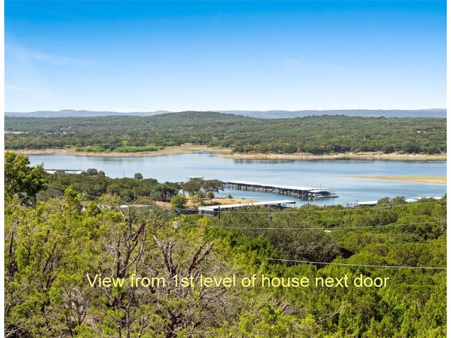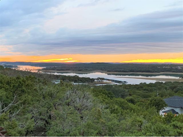 New Reduced Price! STUNNING VIEWS! Nestled atop a high hill, unobstructed and beautiful 180-degrees panoramic views of Lake Travis and Texas Hill Country. Where the gorgeous sunsets extend for miles. This .32-acre lot is partially wooded and has a nice downward slope that is perfect for building a single-level home or a multi-level dream home. This property extends to the street behind it giving you the option to access it from either or both streets! The higher street is a U-shape with minimal traffic. Utility lines, city water/sewer at the street so you'll be able to start the process of building your dream home immediately! A short 5–7 minute walk lands you at the beautiful lakefront 6-acre “Bar-K Park” with a clubhouse for gatherings, swimming pool, playground, Grande Pavilion with grills, athletic field, volleyball sand court, tennis, pickleball, basketball courts, marina, boat ramp and a fishing well. The lot is also within walking distance of another private lakefront park, “Marine View Park” with a boat ramp. By owing this lot, you become a Lago Vista Property Owners Association member with exclusive access to all the amenities; 9 private waterfront parks, 5 boat ramps, campground, disc golf course, swimming pool, fishing well, fitness center, hiking trail, marinas, pavilions, athletic field, tennis, pickleball, basketball courts, playgrounds and more! The POA fees are only $200/year. Outstanding Lago Vista ISD. There are several area golf courses, a city pool, small craft airport, as well as other city amenities. https://www.lagovistatexas.gov Recent Survey is available. Living in Lago Vista is like living on vacation every day. This spectacular lot is not one to miss!